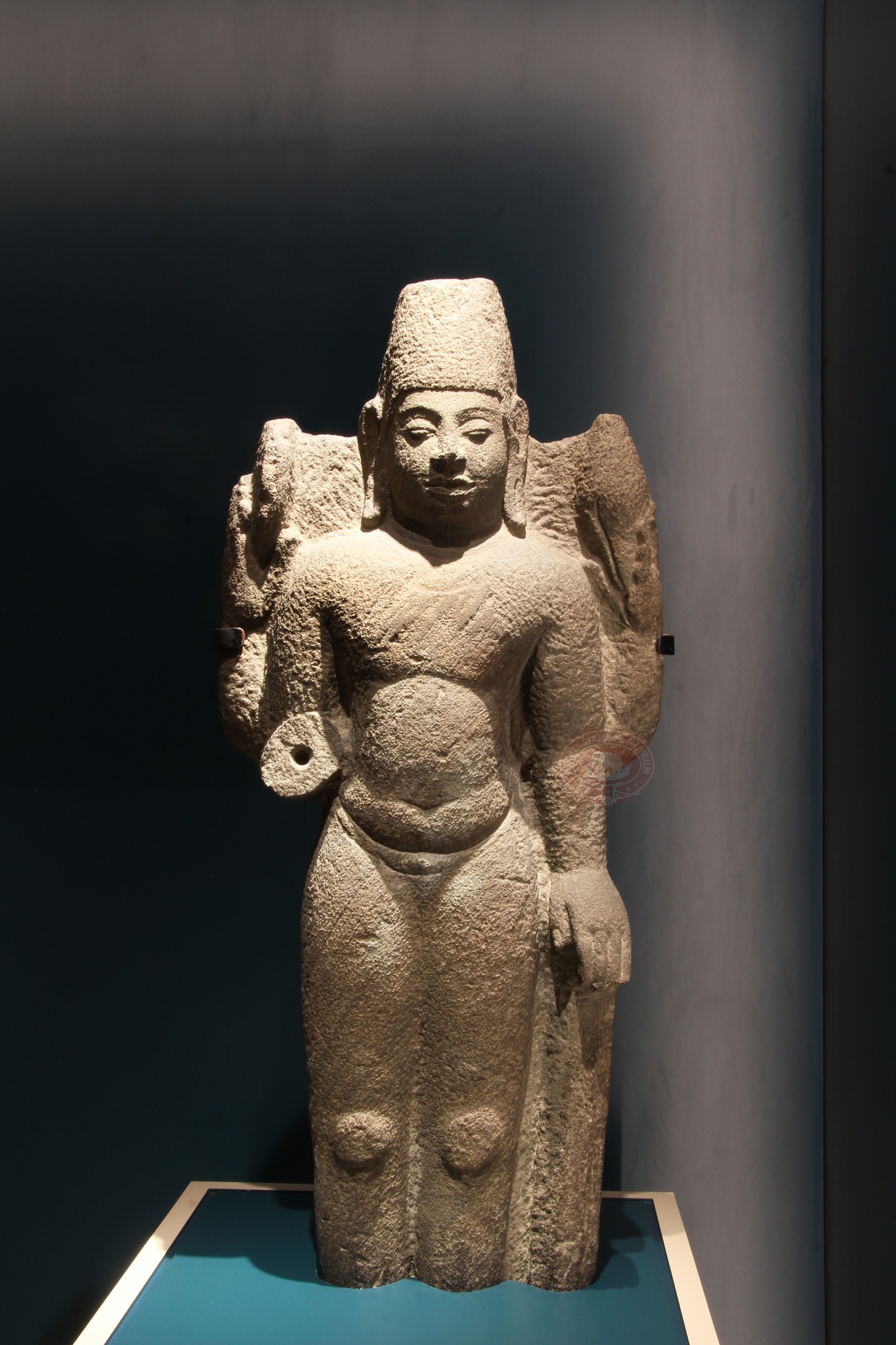 เทวรูปพระวิษณุองค์นี้ยังคงแสดงอิทธิพลจากศิลปะอินเดียใต้หลังสมัยคุปตะ (หลังพุทธศตวรรษที่ ๑๑) อย่างชัดเจน อาทิ การแสดงพระหัตถ์คู่บนทรงจักรและสังข์ (ซึ่งต่างจากเทวรูปพระวิษณุในศิลปะอินเดียเหนือ ที่พระหัตถ์คู่บนทรงคทาและจักร) รวมทั้งกิรีฏมกุฎ ซึ่งแสดงรูปแบบเดียวกับกลุ่มเทวรูปวิษณุในศิลปะอินเดียแบบปัลลวะ กล่าวคือ ลักษณะของศิราภรณ์เป็นหมวกทรงสูง เรียบ ไม่ตกแต่งลวดลาย รูปแบบดังกล่าวนี้ได้รับความนิยมมากในกลุ่มเทวรูปพระวิษณุที่สร้างขึ้นในภาคพื้นของเอเชียตะวันออกเฉียงใต้ ทั้งเทวรูปเขมรสมัยก่อนเมืองพระนคร กลุ่มเทวรูปพระวิษณุในประเทศไทยบริเวณคาบสมุทรภาคใต้และตามเมืองโบราณหลายแห่งทั้งพื้นที่ชายฝั่ง เช่น เพชรบุรี และศรีมโหสถ (ปราจีนบุรี) รวมทั้งเมืองตอนในแผ่นดิน เช่น เมืองศรีเทพ จังหวัดเพชรบูรณ์ เป็นต้น