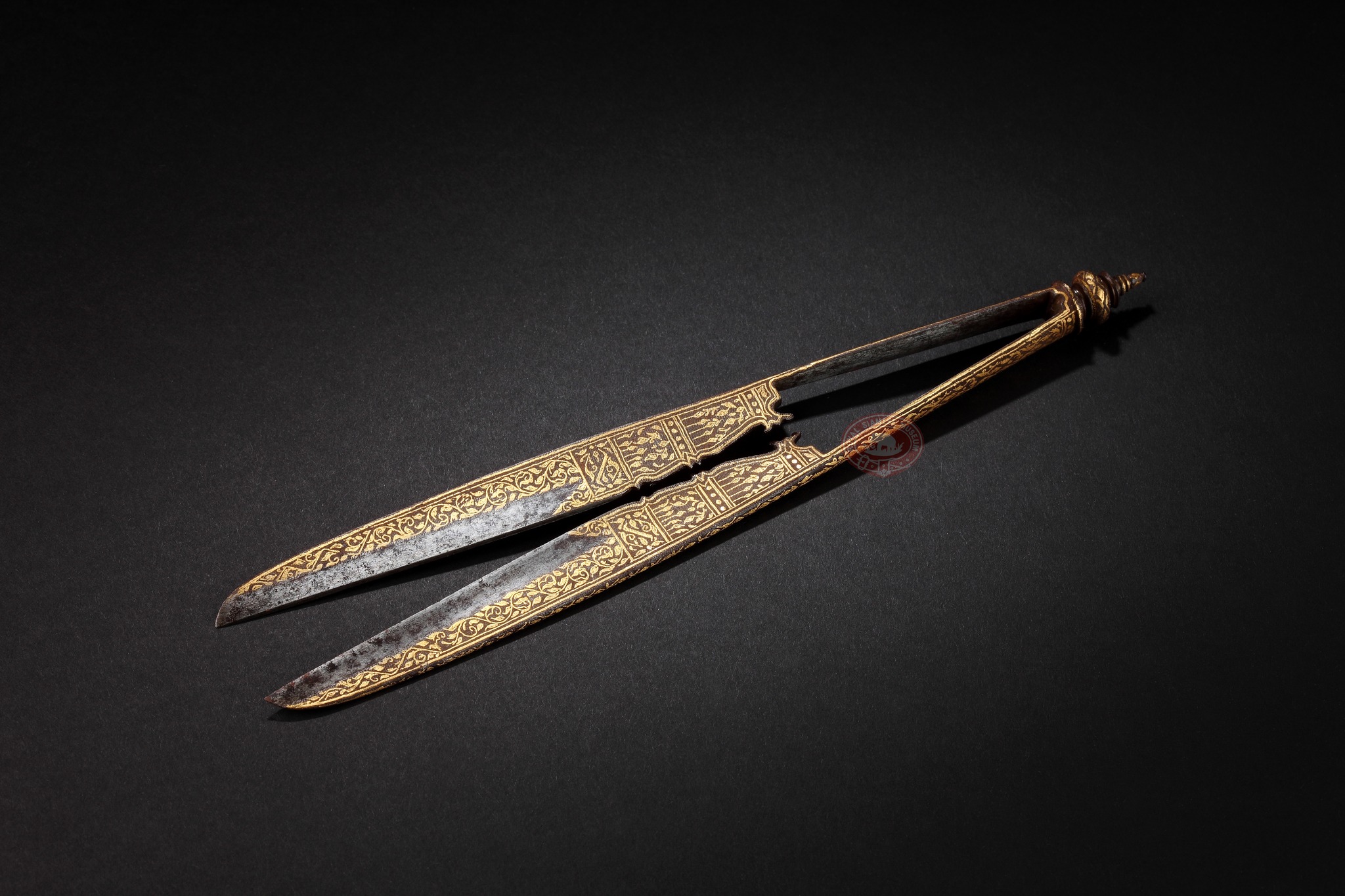 กรรไกรไทย เครื่องมือสำหรับตัดโดยการหนีบทำด้วยเหล็ก มีใบมีด ๒ ใบ แต่ละใบมีขาทำหน้าที่เป็นก้านแหนบและด้ามจับ ใบมีดกรรไกรจึงถ่างกว้าง เวลาใช้งานต้องใช้มือหนีบขากรรไกรให้คมมีดทั้งสองใบสบกัน ส้นกรรไกรกลึงเป็นยอดเม็ด ตกแต่งด้วยลายคร่ำทอง โดยใช้เส้นโลหะทองฝังเป็นลวดลายลงไปในเนื้อเหล็ก วิธีทำคร่ำอย่างไทยจะใช้เครื่องมือปลายแหลมคล้ายสิ่วตอกสักลงบนผิวเหล็กตัดกันไปมาให้เกิดความขรุขระ จากนั้นจึงใช้เส้นทองหรือเส้นเงินตอกย้ำลงไปให้ติดแน่นเป็นลวดลาย แล้วจึงกวดผิวให้เรียบ