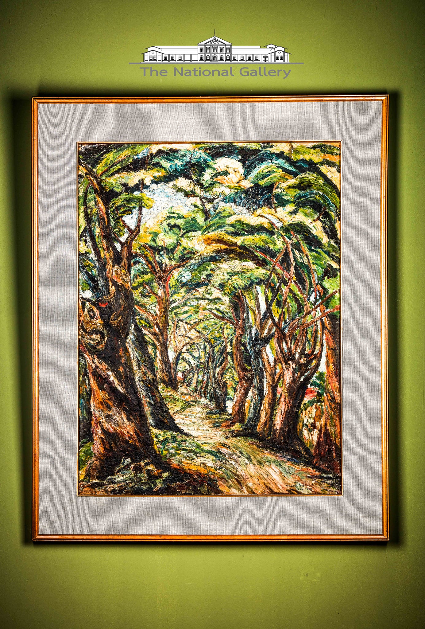 Detail: Misiem Yipint Soi, considered among early generation of woman artists in Thailand around late 1950s, although she did not graduate from any art institutes. Her family background as a business family offers her an opportunity to travelling abroad on business purpose occasionally, she visited art museums and art galleries as she traveled from town to town which resulted as her impression on western art especially impressionist painting. When she came back to Bangkok, she decided to have a private painting lesson with Japanese painter Mounet Satomi. Misiem’s skill on painting developed rapidly due to her interest on impressionist landscape. Less than a year from her lesson with Satomi, she was encouraged to send this landscape painting entitled “Dreamer Avenue” to compete on the 1st National Exhibition of Art in 1949 and won honorary gold medal award on painting. And surprisingly she also won the same award from the same competition in 1950 and 1951. Due to her thrice award winning in a row, she is the first Thai artist who adopted as “Artist of Distinction” on the 3rd National Exhibition of Art.
