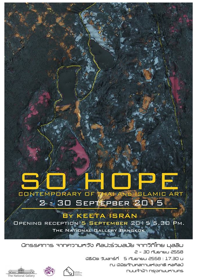 Exhibition to present the works of multi-media art in the series from the hope (SO HOPE) By Keeta Isran, to present and the creative art works from Thai – Muslim way of life.