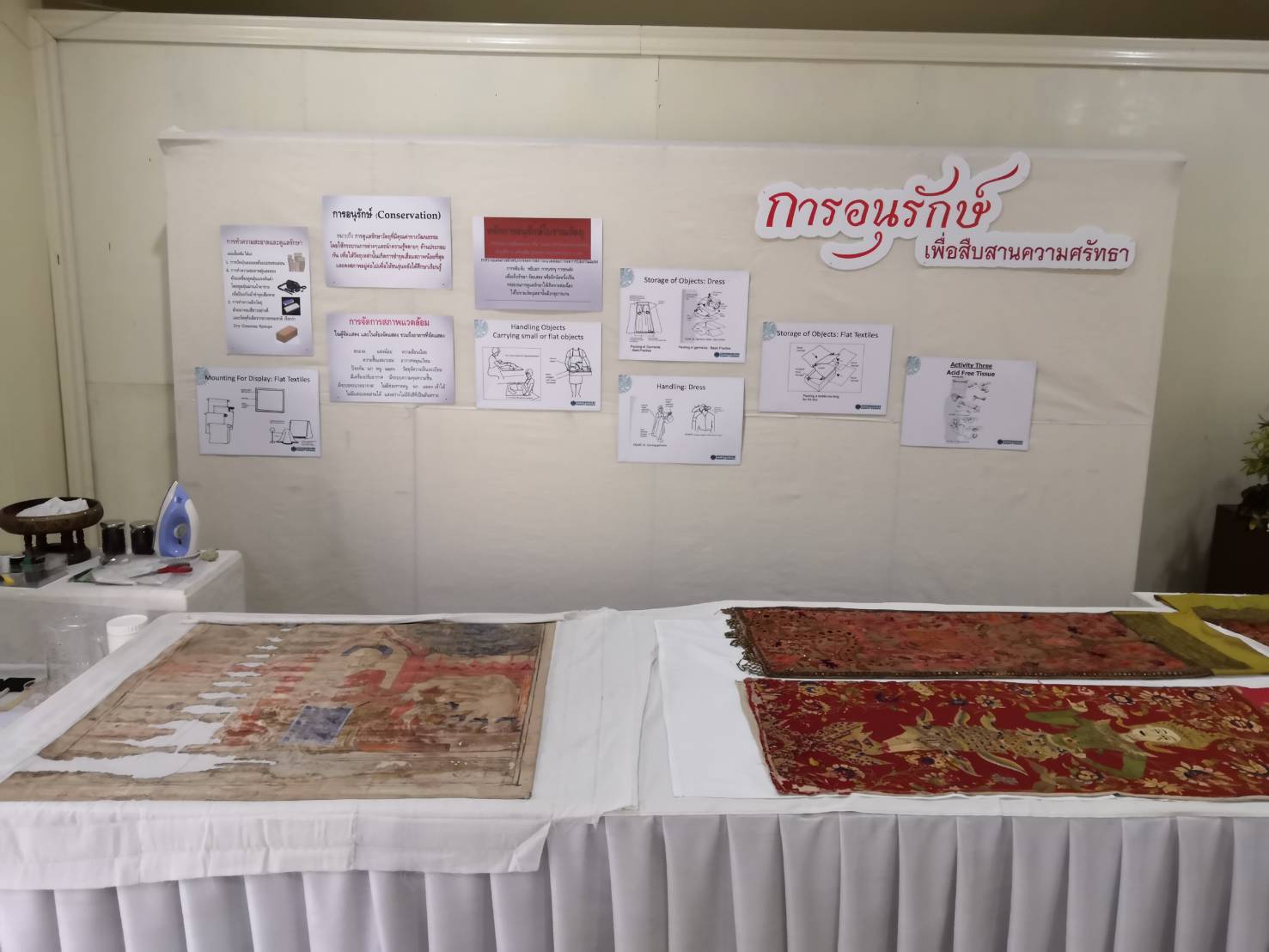 การจัดแสดงจะมีการหมุนเวียนนำผ้าที่อนุรักษ์ทำความสะอาดแล้วเสร็จ หมุนเวียนทุก ๑ เดือน (ซึ่งขณะนี้จัดแสดงอยู่ ๕๐ ชิ้น และรอนำหมุนเวียนจัดแสดงอีกกว่า ๓๐ ชิ้น) การจัดนิทรรศการครั้งนี้ เป็นกิจกรรมหนึ่งภายใต้โครงการเครือข่ายมรดกศิลปวัฒนธรรม ในพื้นที่ จ.ลำพูน - ลำปาง ปีที่ ๑ โดยเริ่มตั้งแต่การสำรวจวัดที่มีการจัดเก็บผ้าที่ใช้เนื่องในพุทธศาสนา จัดอบรมด้านการอนุรักษ์ และนำผ้าจากที่ทางวัดและชุมชนร่วมกันอนุรักษ์ มาจัดแสดง บางวัดได้มีการอนุรักษ์ในเบื้องต้นมาก่อนแล้ว แต่เมื่อทางนักวิทยาศาสตร์เพื่อการอนุรักษ์ ได้มาให้ความรู้ ถึงกระบวนการทำความสะอาด จัดเก็บ หรือจัดแสดง และใช้งานเพื่อให้ผ้าสามารถยืดอายุต่อไปได้ ตลอดจนถึงเทคนิควิธีการใหม่ๆที่ทำให้ผ้าแข็งแรง และทำให้การเสื่อมสภาพของผ้าลดลง นอกจากกระบวนการอนุรักษ์ สงวนรักษาโดยการได้ลงมือปฏิบัติจริงของชุมชนแล้ว ยังเกิดการสร้างเครือข่ายความร่วมมือเกิดอาสาสมัคร และการแลกเปลี่ยนองค์ความรู้แล้ว พิพิธภัณฑสถานแห่งชาติ หริภุญไชย ยังได้จัดการบรรยายพิเศษ เพื่อประกอบนิทรรศการดังกล่าว ทั้งนี้กระบวนการต่อไปคือการฟื้นฟูงานช่างฝีมือ ขึ้นมาใหม่ เพื่อสืบสานภูมิปัญญาการเย็บ ปัก ลวดลาย ของภูมิปัญญาดั้งเดิมมิให้สูญหาย อีกทั้งวัตถุทางวัฒนธรรมเหล่านี้ยังจะสามารถทำหน้าที่เพื่อพุทธศาสนาสืบต่อไป