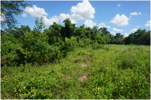ผลการดำเนินการตรวจสอบแหล่งโบราณคดีบ้านสระบัว อยู่ในพื้นที่เมืองโบราณนครจำปาศรี เป็นที่แห่งเดียวกันกับโบราณสถานที่สำรวจพบมาแล้ว โดยในรายงานโครงการศึกษาออกแบบเพื่อพัฒนานครจำปาศรีฯ โดยจังหวัดมหาสารคามได้ว่าจ้างมหาวิทยาลัยมหาสารคามเป็นผู้จัดทำ เป็นโบราณสถานหมายเลข ๒ ตั้งอยู่กลางทุ่งนา บริเวณกลางเมืองค่อนไปทางทิศเหนือ ปัจจุบันอยู่ในสภาพมีวัชพืชขึ้นรกมาก มีหลุมลักลอบขุดหาของมีค่าอยู่กลางเนิน จากการสำรวจพบว่าโบราณสถานถูกรื้อทำลายจนแทบจะหมดแล้ว มีเศษอิฐและเศษก้อนศิลาแลงกระจายอยู่ทั่วไป อาจสภาพที่รกทึบจึงไม่อาจเข้าทำการสำรวจโดยละเอียดได้