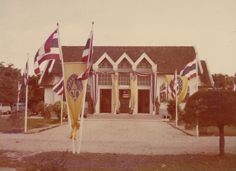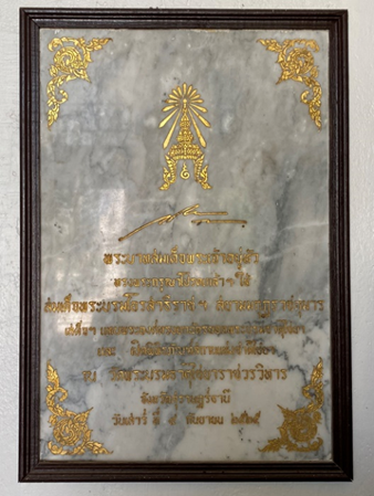 ภาพ : จารึกพระนามาภิไธยเนื่องในวโรกาสเสด็จพระราชดำเนินทรงยกฉัตรยอดพระบรมธาตุไชยาและทรงเปิดพิพิธภัณฑสถานแห่งชาติ ไชยา วันเสาร์ที่ ๔ กันยายน ๒๕๒๕