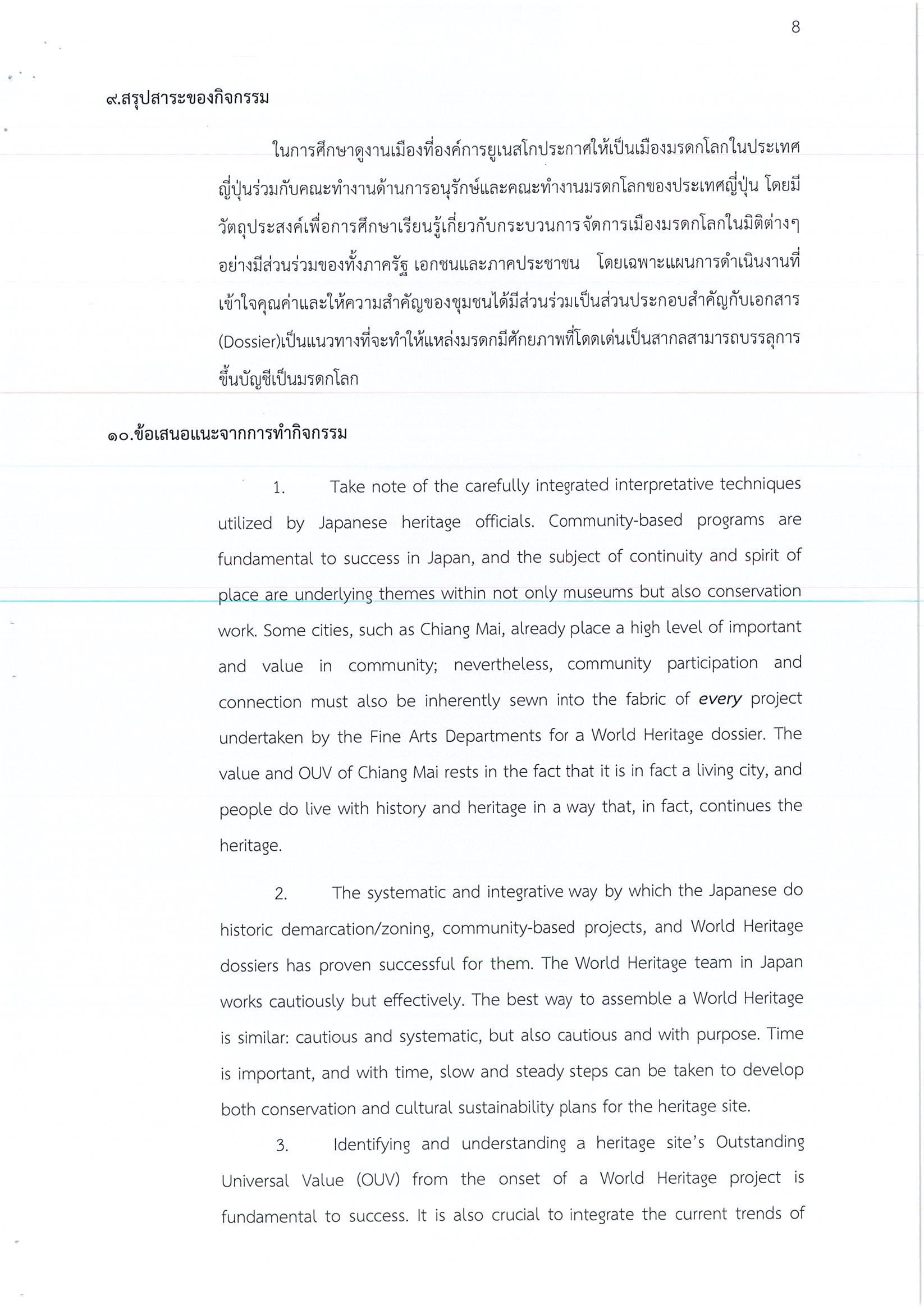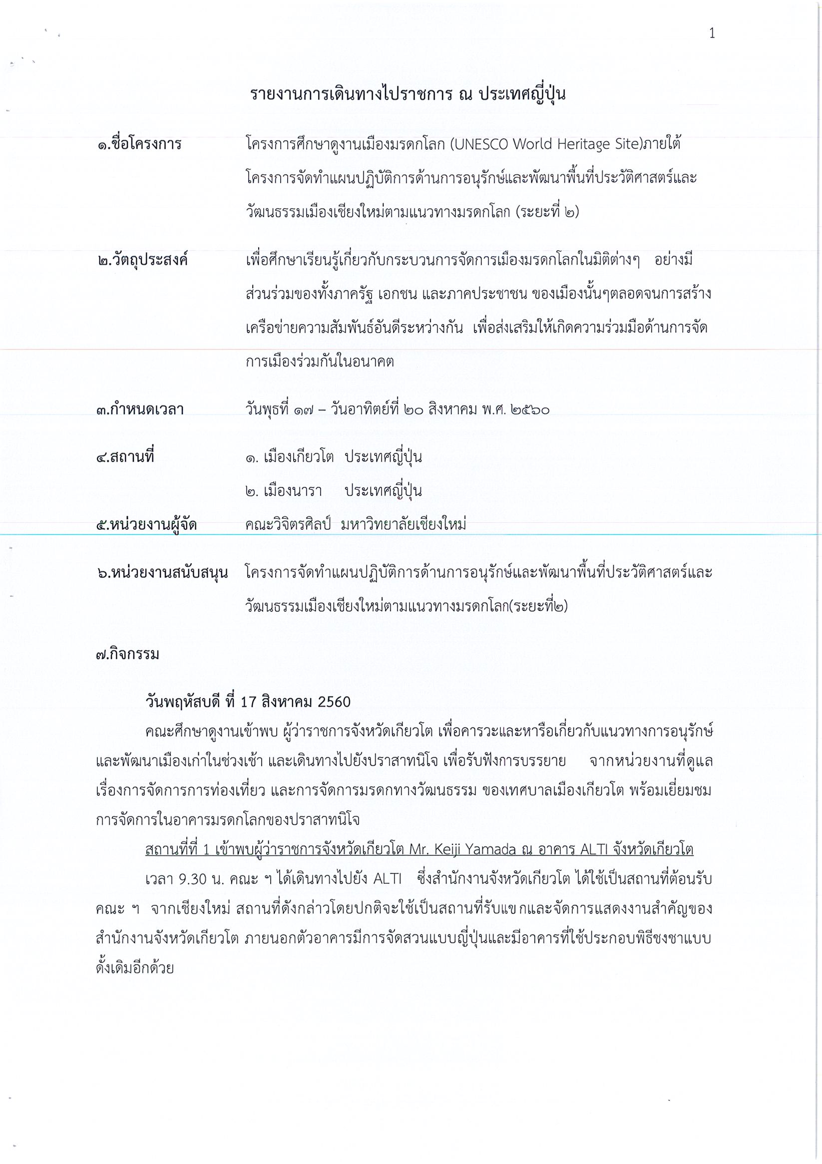 รายงานการเดินทางไปราชการ ณ ประเทศญี่ปุ่น ระหว่างวันที่ 16 – 20 สิงหาคม 2560 โครงการศึกษาดูงานเมืองมรดกโลก ภายใต้โครงการจัดทำแผนปฏิบัติการด้านการอนุรักษ์และพัฒนาพื้นที่ประวัติศาสตร์และวัฒนธรรมเมืองเชียงใหม่ตามแนวทางมรดกโลก ระยะที่2