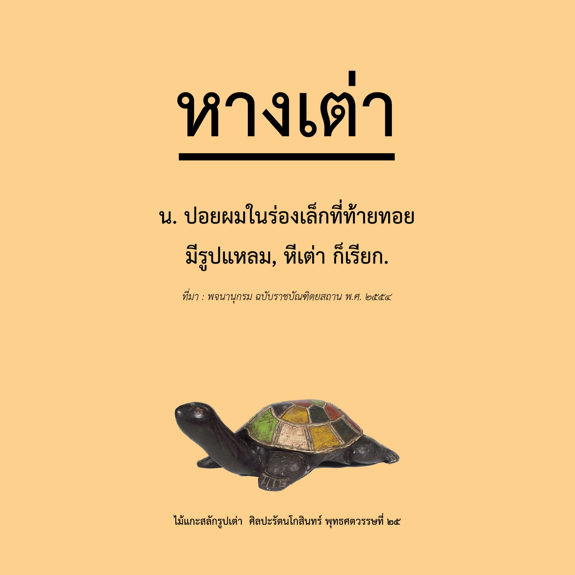 ภาพที่ ๒ ไม้แกะสลักรูปเต่า คลังกลางพิพิธภัณฑสถานแห่งชาติ กับหางเต่าในพจนานุกรม