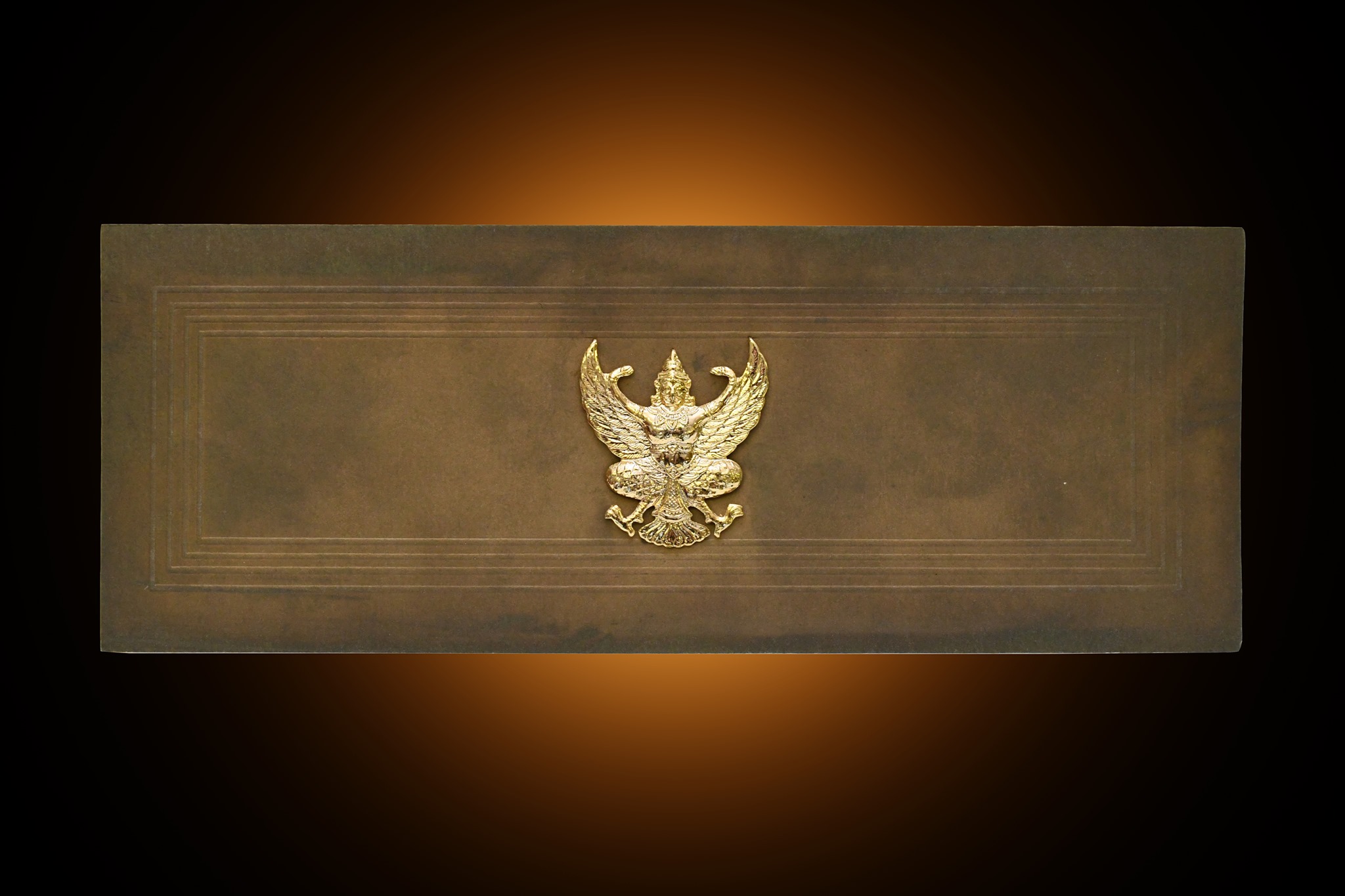 ภาพครุฑบนปกรัฐธรรมนูญแห่งราชอาณาจักรไทย ฉบับที่ ๑๕ ประกาศใช้เมื่อวันที่ ๙ ธันวาคม ๒๕๓๔ คลังกลางพิพิธภัณฑสถานแห่งชาติ