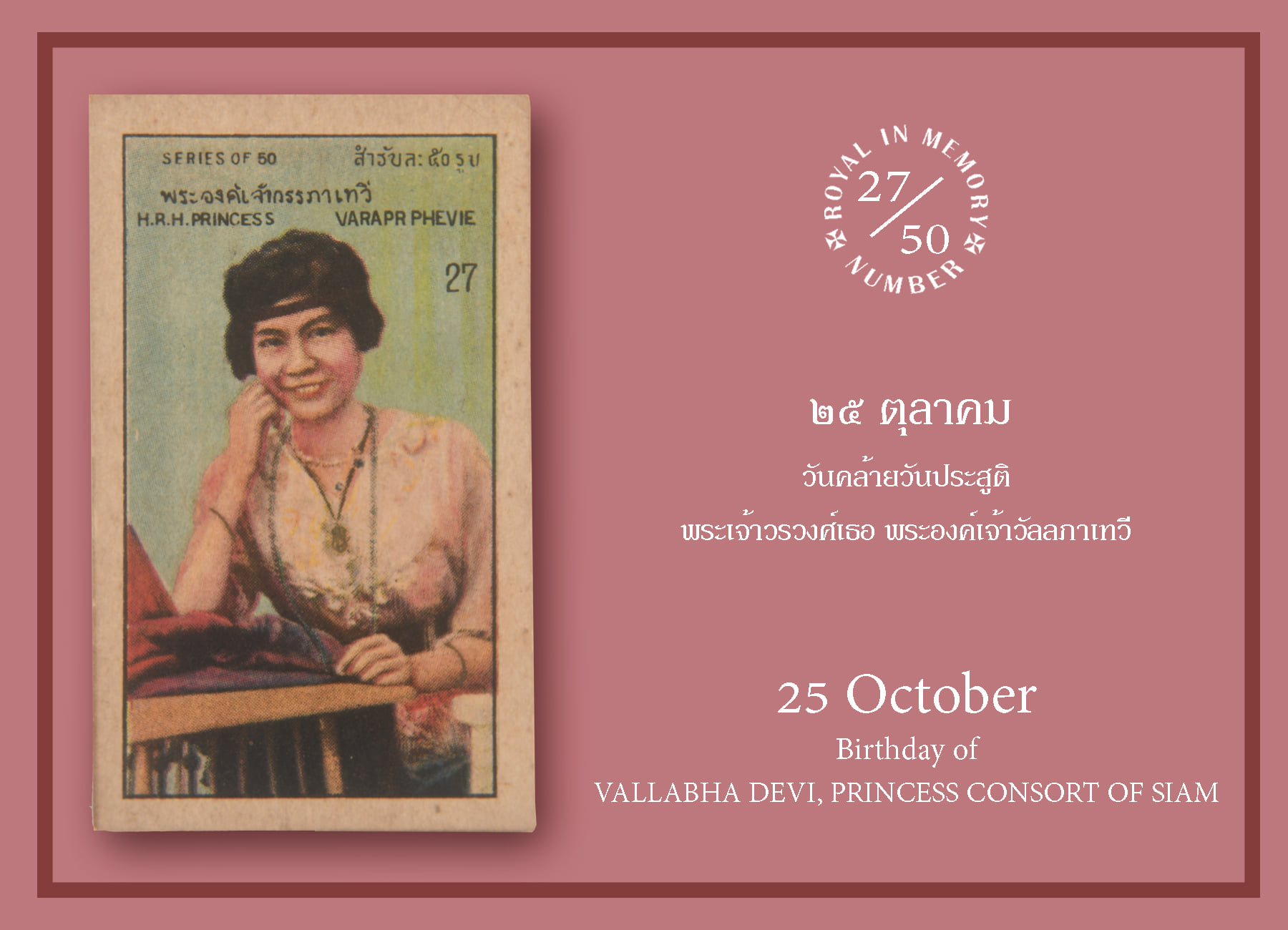 ๒๕ ตุลาคม ๒๔๓๕ (๑๒๙ ปีก่อน) – วันประสูติพระเจ้าวรวงศ์เธอ พระองค์เจ้าวัลลภาเทวี