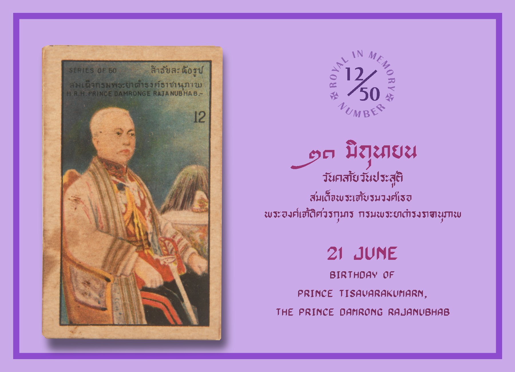 50Royalinmemory ๒๑ มิถุนายน ๒๔๐๕ (๑๖๐ ปีก่อน) - วันประสูติสมเด็จพระเจ้าบรมวงศ์เธอ พระองค์เจ้าดิศวรกุมาร กรมพระยาดำรงราชานุภาพ [พระเจ้าบรมวงศ์เธอ ชั้น ๔ พระองค์เจ้าชั้นเอก]