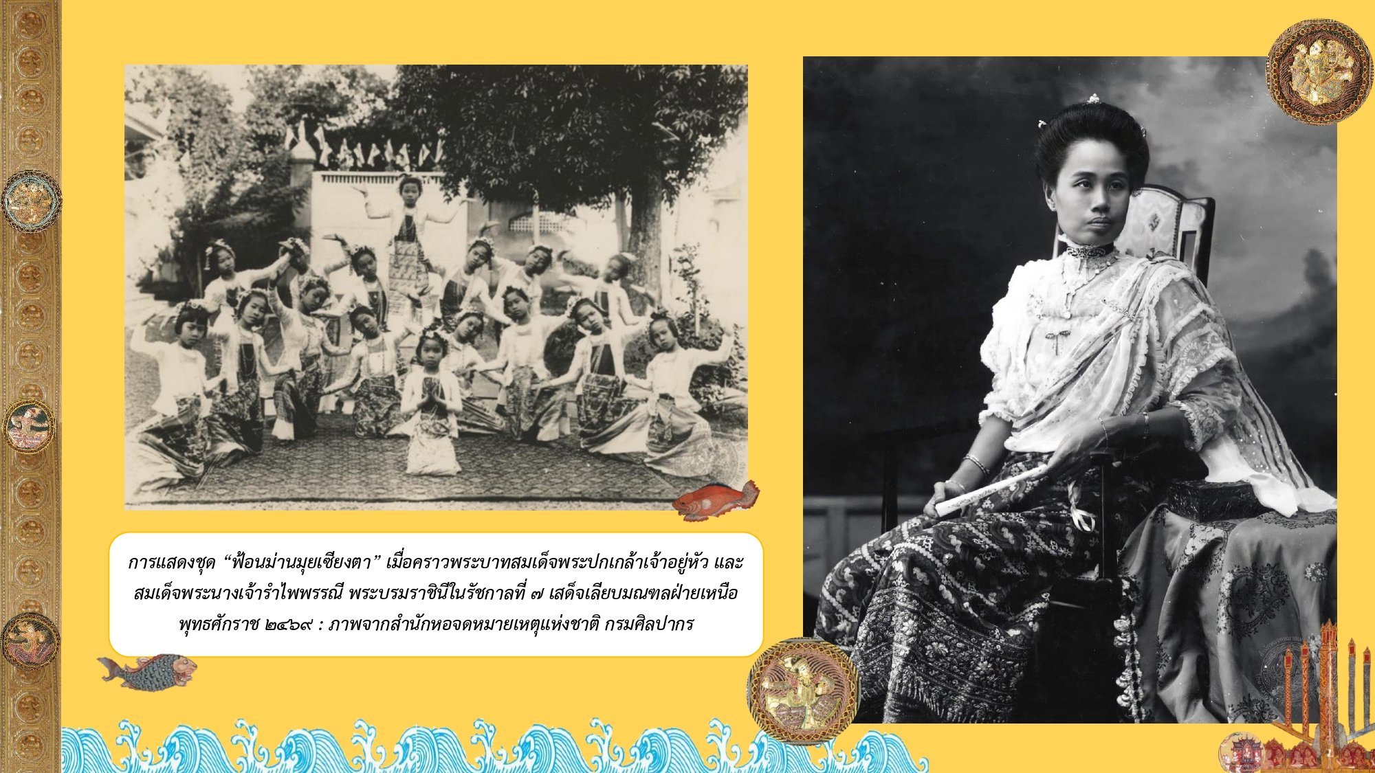 ภาพที่ ๑ (ซ้าย) การแสดงฟ้อนม่านมุ้ยเชียงตา (ขวา) พระราชชายา เจ้าดารารัศมี
