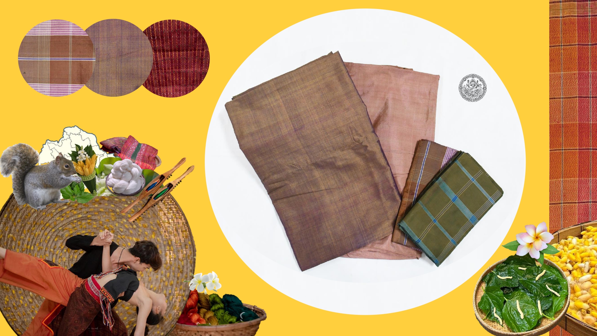 รูปแบบของผ้าไหมอีสานใต้ มีเอกลักษณ์สำคัญคือการย้อมผ้าโทนสีส้มแดง หรือสีเอิร์ธโทน (Earth tone) ผูกลวดลายตามเรขาคณิต และใช้ทรัพยากรท้องถิ่นให้เกิดความคุ้มค่า ไม่ว่าจะเป็นผ้าภูอัคนี เป็นผ้าย้อมดินภูเขาไฟจากเขาพระอังคาร ผ้าซิ่นมัดหมี่ย้อมสีจากครั่งของกลุ่มชาติพันธุ์ไทยเชื้อสายลาวและผ้าซิ่นตีนแดง ซึ่งถือเป็นผ้าทอเอกลักษณ์ของจังหวัดบุรีรัมย์ที่ได้นำมาตัดเย็บประยุกต์เป็นชุดสำหรับประกอบการแสดงบทเพลงนี้