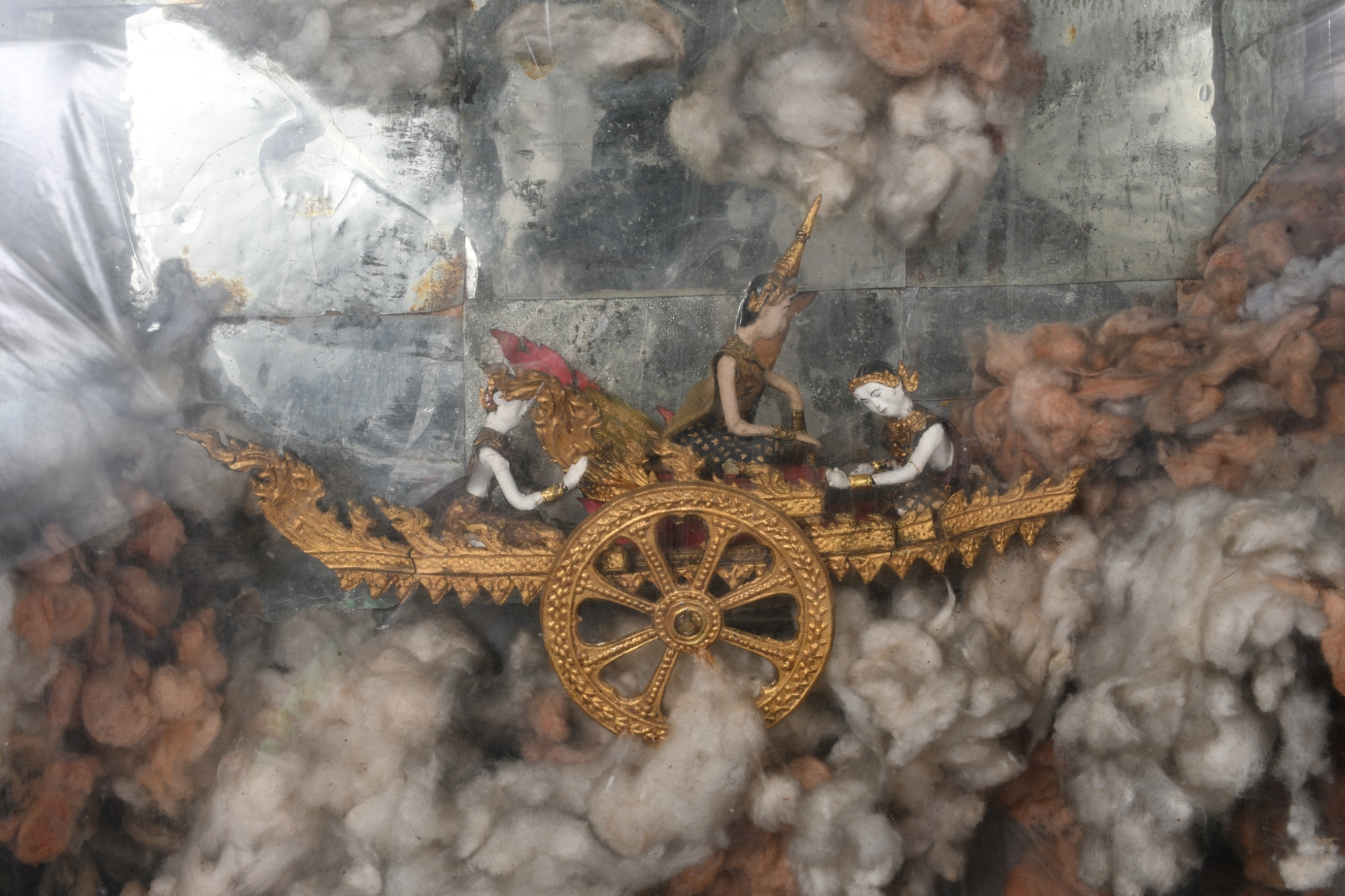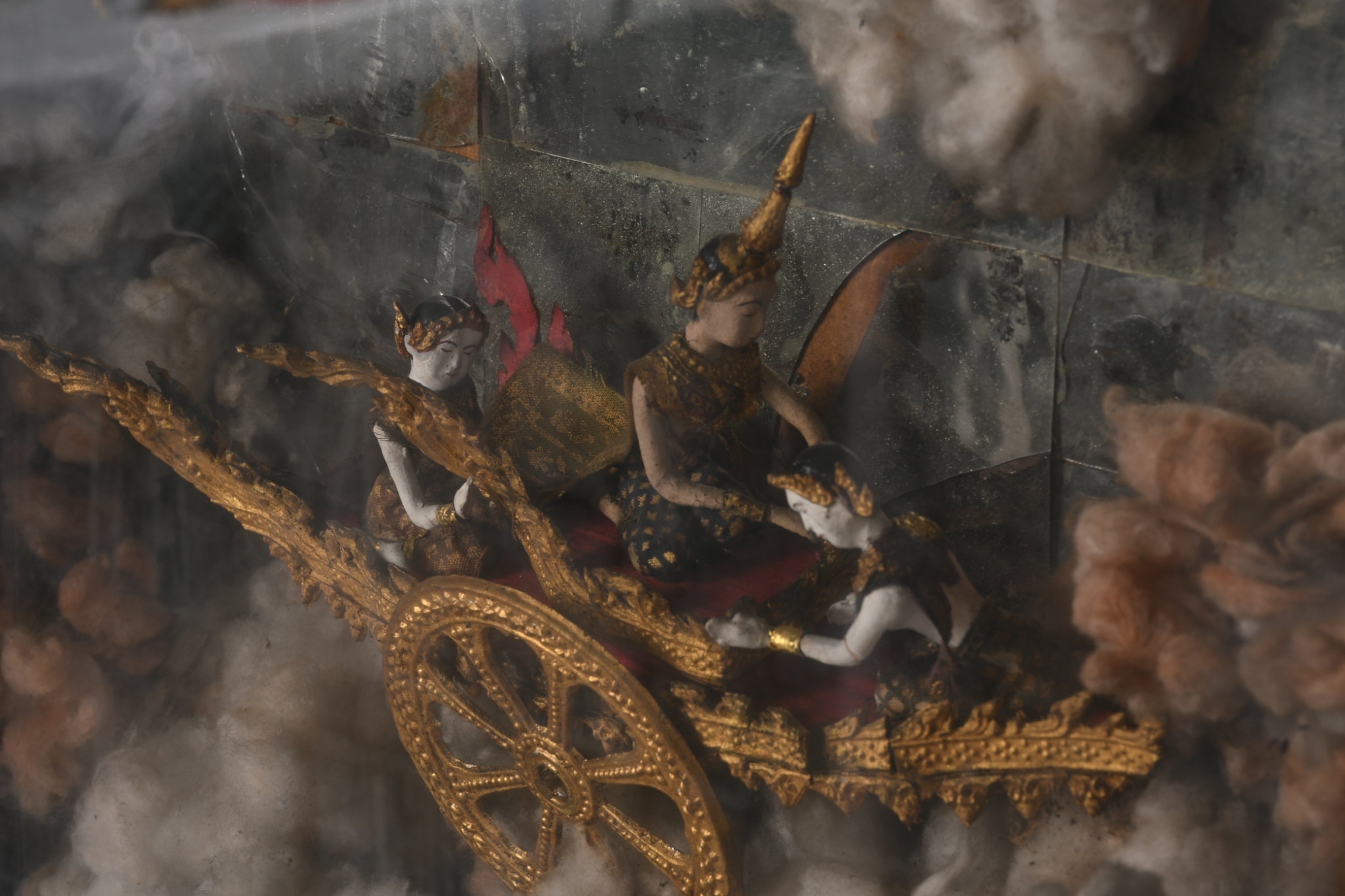 เครื่องตกแต่งพระเบญจาประดิษฐานพระโกศในงานพระเมรุ เดิมอยู่ที่หอพระนาก วัดพระศรีรัตนศาสดาราม รับมาไว้ในพิพิธภัณฑสถาน เมื่อวันที่ ๑๐ กันยายน พ.ศ. ๒๔๗๓
