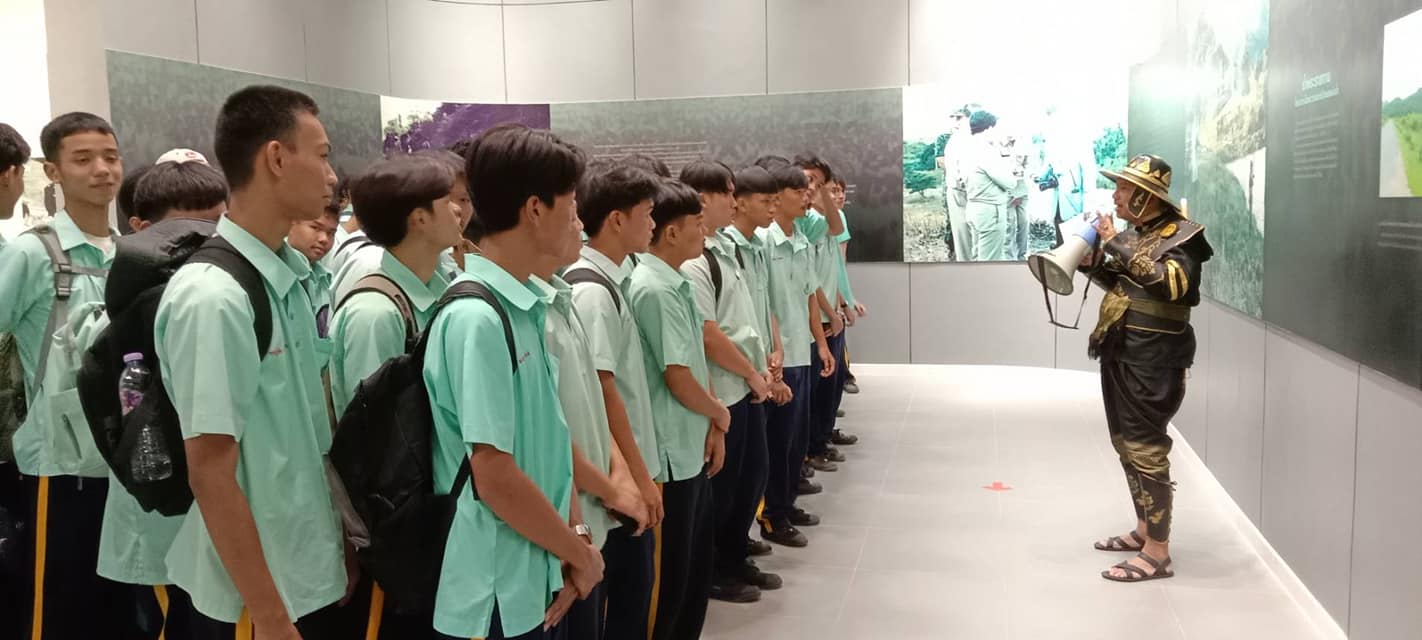 และว่าที่ ร.ต. รุ่งเรือง ชื่นชม พนักงานประจำพิพิธภัณฑ์ เป็นวิทยากรนำชม