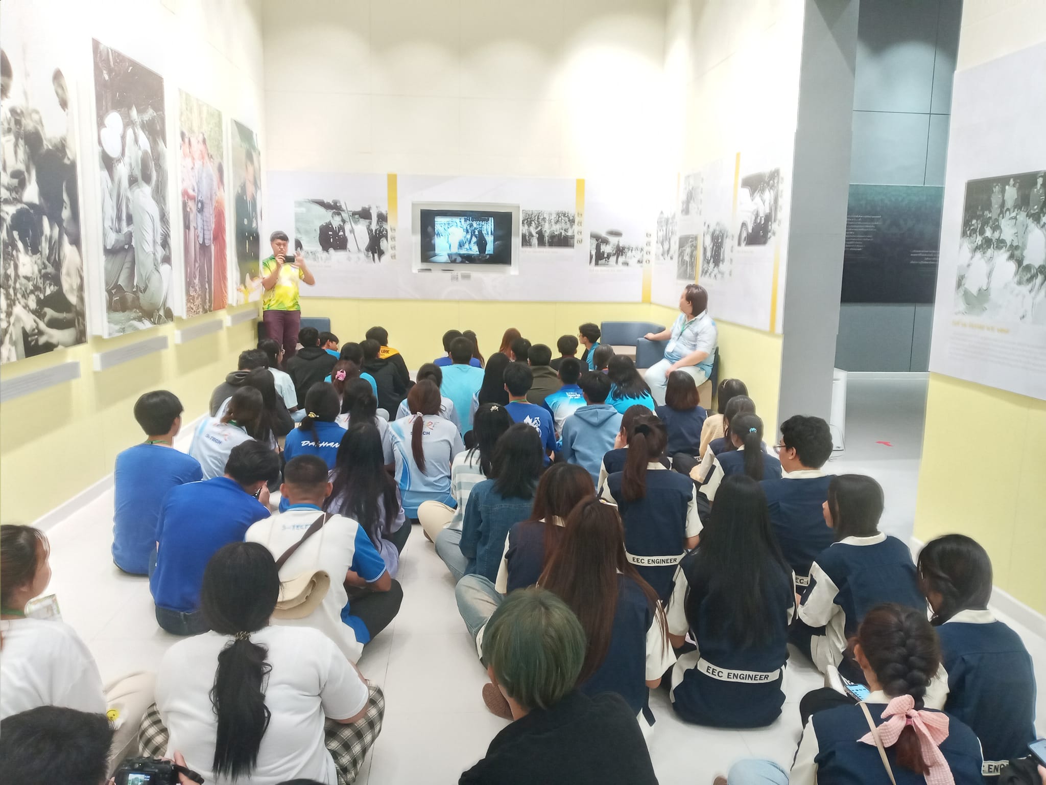 เป็นวิทยากรนำชมในครั้งนี้ พร้อมทั้งทำกิจกรรม WorkShop สาธิตการทำ ธุงใยมงคล โดยกลุ่มธุงใยลาวเวียงบ้านวังยายฉิม