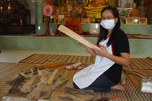 หอสมุดแห่งชาติเฉลิมพระเกียรติฯ นครพนม ได้จัดกิจกรรม โครงการกิจกรรมรณรงค์ การดูแลรักษามรดกทางศิลปวัฒนธรรม โดยอาสาสมัครท้องถิ่นในการดูแลรักษามรดกทางศิลปวัฒนธรรม (อส.มศ.) วันเสาร์ที่ 21 มิ.ย. 2557 ณ วัดศรีสุมังค์ ต.นาถ่อน อ.ธาตุพนม จ.นครพนม กิจกรรมอนุรักษ์เอกสารโบราณ