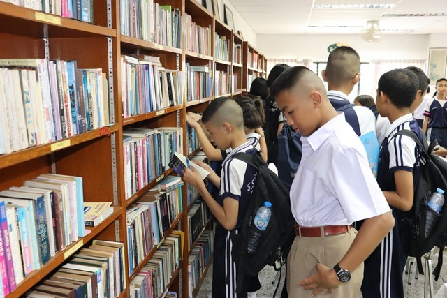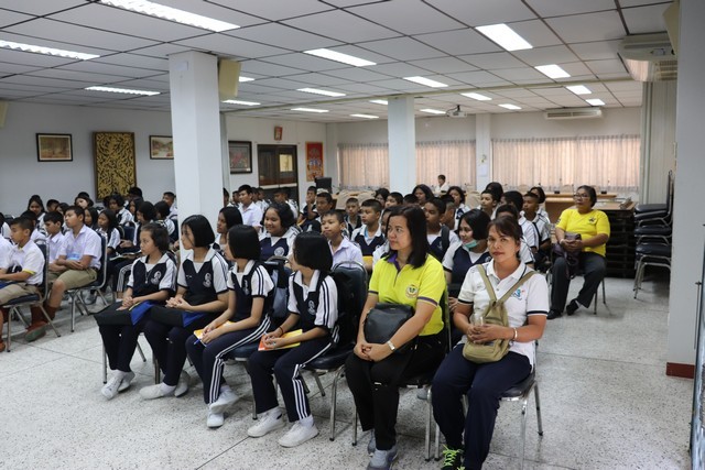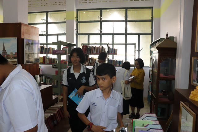 คณะครูและนักเรียน ระดับชั้นมัธยมศึกษาปีที่ ๑ จากโรงเรียนวัดพระมหาธาตุ จังหวัดนครศรีธรรมราช จำนวน ๗๑ คน เข้าเยี่ยมชมและศึกษาแหล่งเรียนรู้ ณ หอสมุดแห่งชาตินครศรีธรรมราช เพื่อประกอบการเรียนกลุ่มสาระการเรียนรู้สังคมศึกษา ฯ เมื่อวันที่ ๑๑ กรกฎาคม ๒๕๖๒