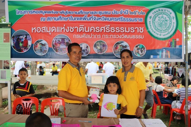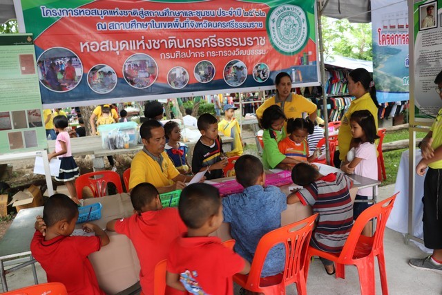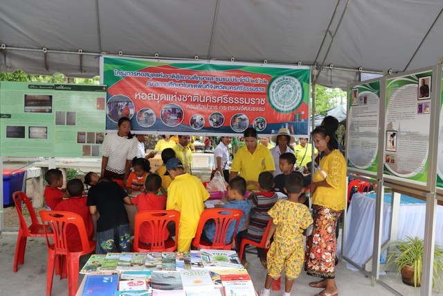 หอสมุดแห่งชาตินครศรีธรรมราช จัดโครงการหอสมุดแห่งชาติสู่สถานศึกษาและชุมชุน ณ ศูนย์วัฒนธรรมเฉลิมราชควนชะลิก งานประเพณีทำขวัญข้าวของชาวควนชะลิก อำเภอหัวไทร จังหวัดนครศรีธรรมราช วันที่ ๒๓ มิถุนายน ๒๕๖๒