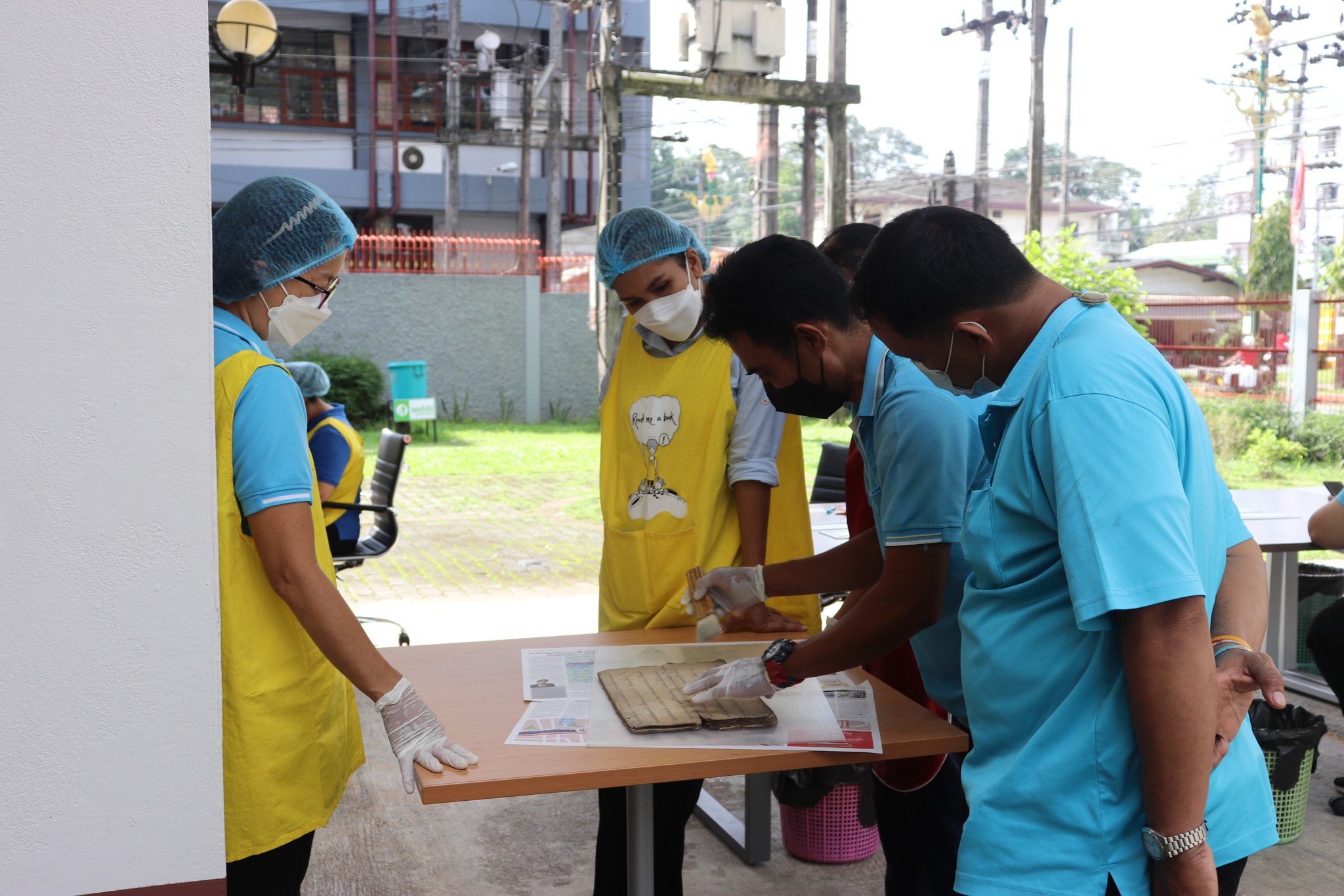 หอสมุดแห่งชาตินครศรีธรรมราช จัดกิจกรรมอนุรักษ์เอกสารโบราณ โดยการทำความสะอาดและจัดเก็บเอกสารโบราณ ประเภทสมุดไทย ที่ได้รับเพิ่มเติม จำนวน ๘ เล่ม ณ หอสมุดแห่งชาตินครศรีธรรมราช วันศุกร์ที่ ๑๖ ธันวาคม ๒๕๖๕