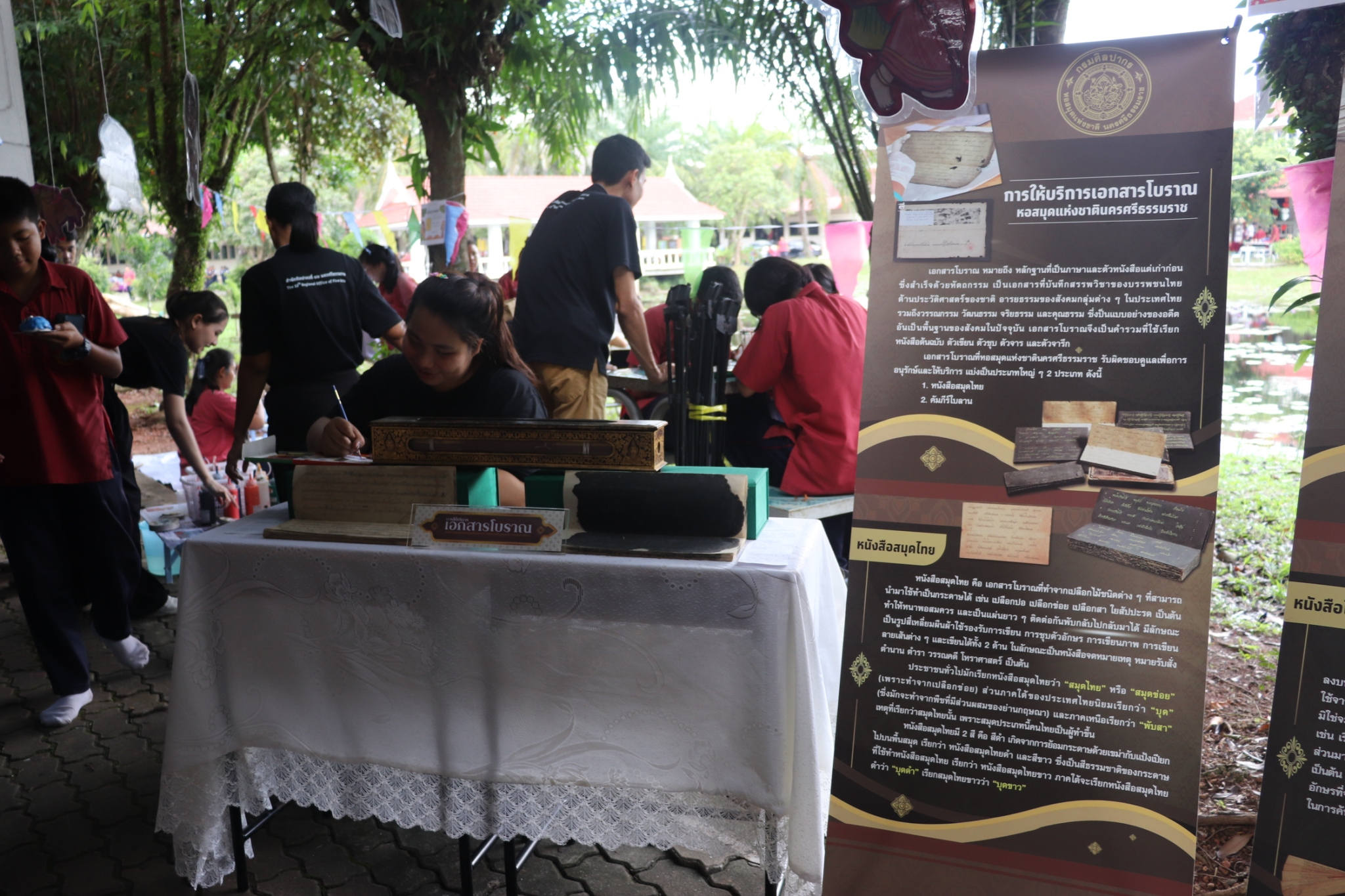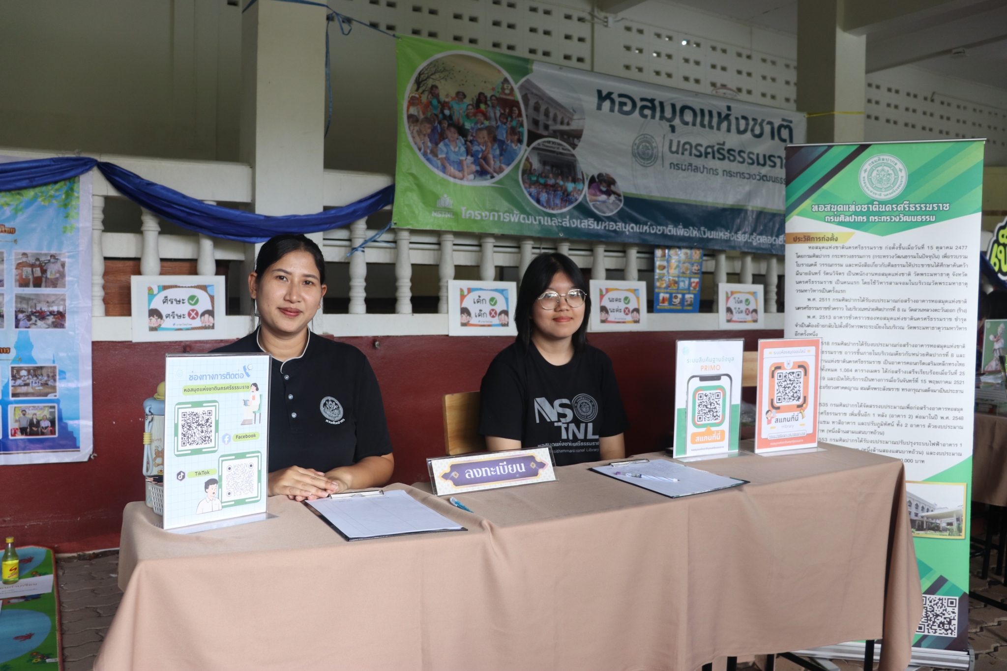 วันศุกร์ที่ ๑๓ กุมภาพันธ์ ๒๕๖๙ หอสมุดแห่งชาตินครศรีธรรมราช จัดโครงการพัฒนาและส่งเสริมหอสมุดแห่งชาติเพื่อให้เป็นแหล่งเรียนรู้ตลอดชีวิต ประจำปี ๒๕๖๙ กิจกรรมหอสมุดแห่งชาติสู่สถานศึกษาและชุมชน ในงานเปิดบ้านวิชาการ วันประดู่แดง ประจำปีการศึกษา ๒๕๖๘