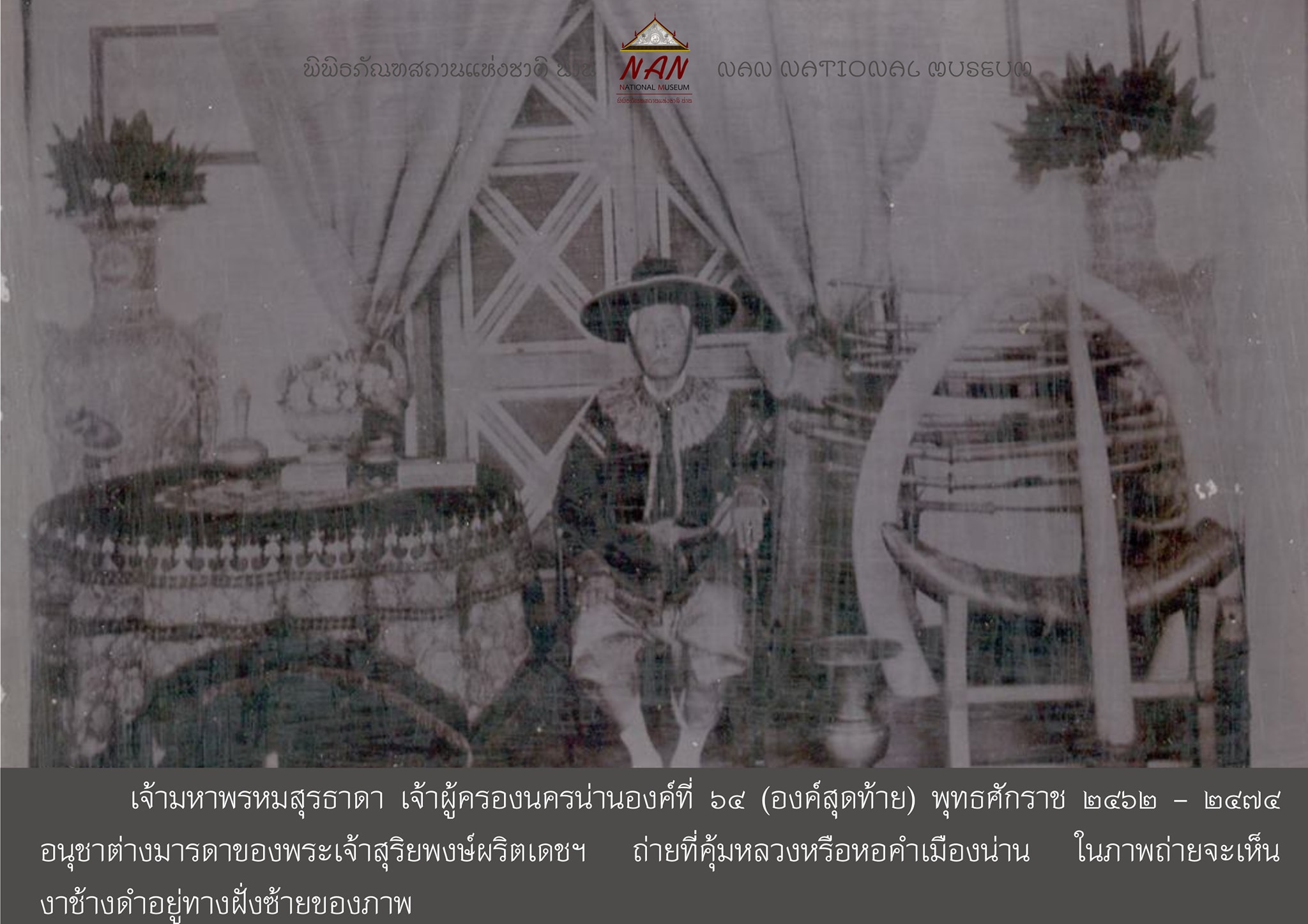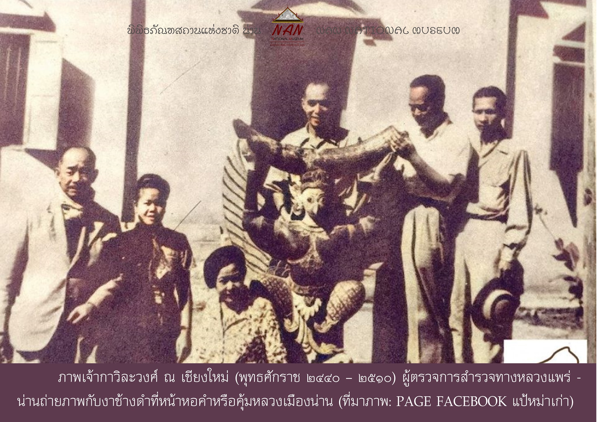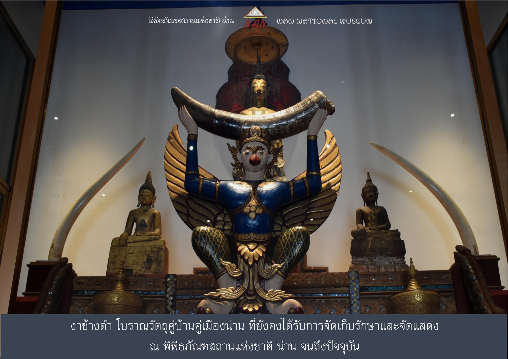 --- งาช้างดำ เดิมเป็นสมบัติของเจ้าผู้ครองนครน่าน ที่รักษาสืบต่อกันมาหลายชั่วอายุคน ซึ่งยังคงอยู่คู่กับหอคำ หรืออาคารพิพิธภัณฑสถานแห่งชาติ น่าน มาจนถึงปัจจุบัน