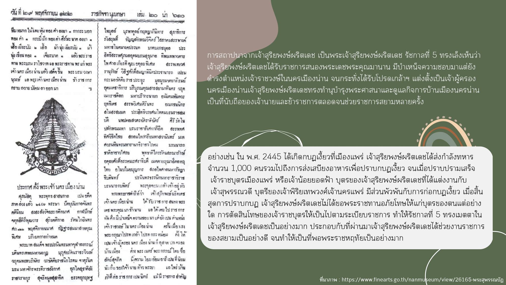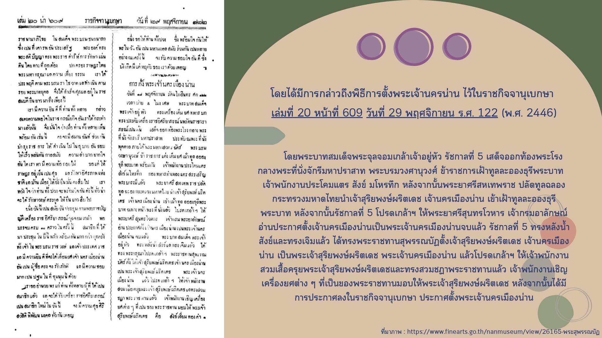 เรื่อง "พระสุพรรณบัฏ" สถาปนาเจ้าสุริยพงษ์ผริตเดช เป็นพระเจ้าน่าน