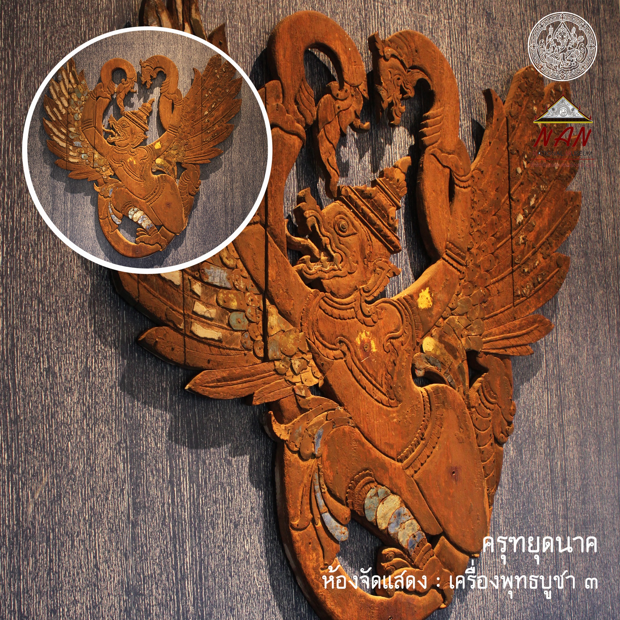 ประวัติ : ผู้ว่าราชการจังหวัดน่านรับมอบจากพระครูศิริคุณาทาน เจ้าอาวาสวัดท่าล้อ อำเภอภูเพียง จังหวัดน่าน สันนิษฐานว่าเดิมประดับอยู่ในส่วนของหน้าบันอาคาร เช่น วิหาร เป็นต้น