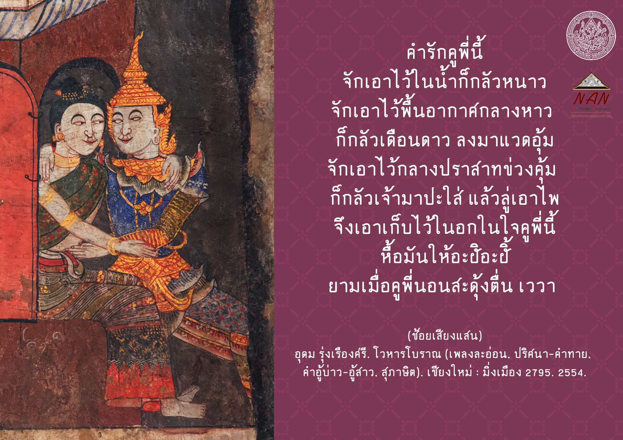 อุดม รุ่งเรืองศรี. โวหารโบราณ (เพลงละอ่อน, ปริศนา-คำทาย, คำอู้บ่าว-อู้สาว, สุภาษิต). เชียงใหม่ : มิ่งเมือง 2795. 2554.