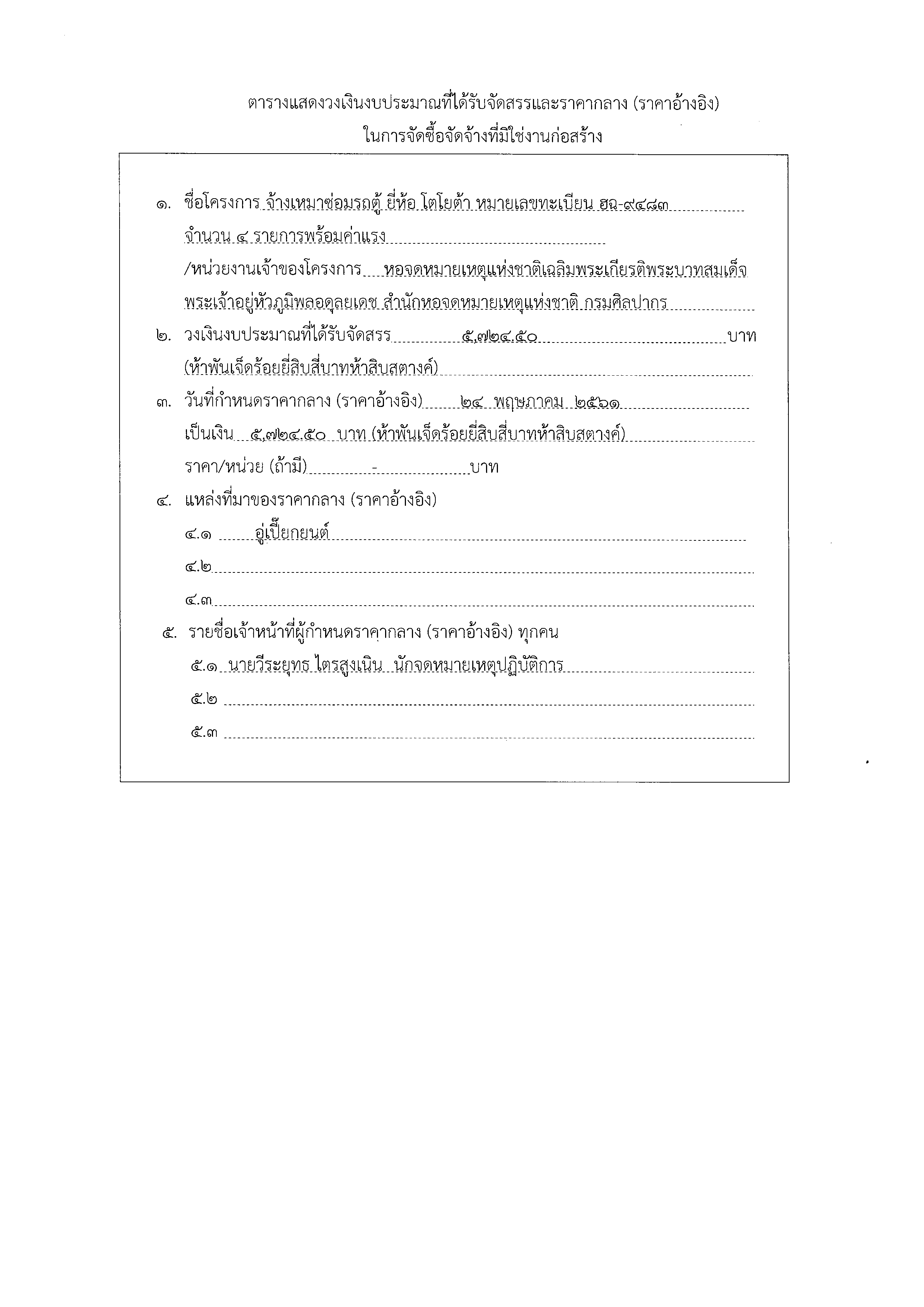 ประกาศร่าง TOR Files - ประกาศร่าง TOR โครงการจ้างเหมาซ่อมรถตู้ ยี่ห้อ โตโยต้า หมายเลขทะเบียน ฮฉ - 9483