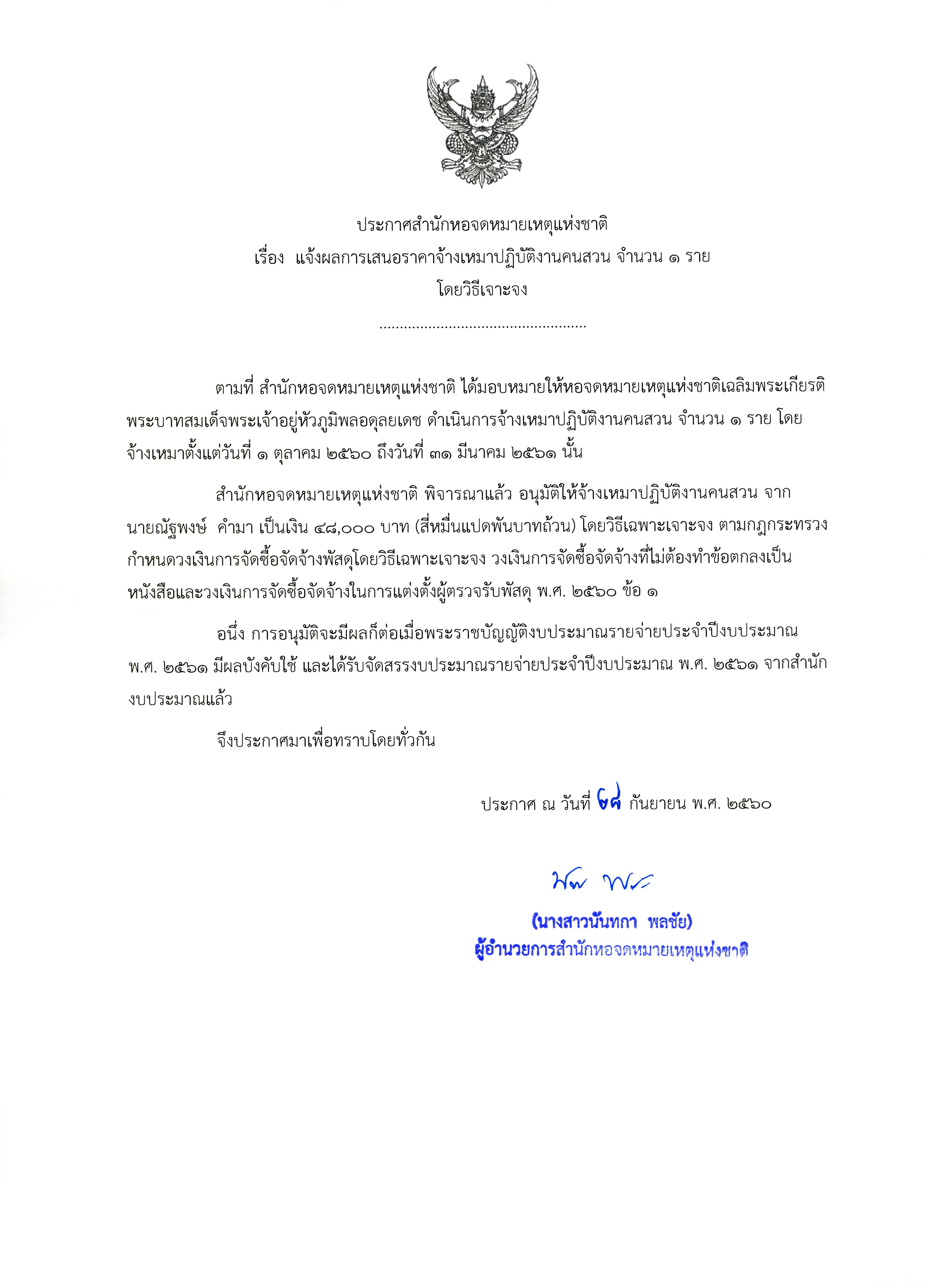 แจ้งผลการเสนอราคาจ้างเหมาปฏิบัติงานคนสวน จำนวน 1 ราย 13-1