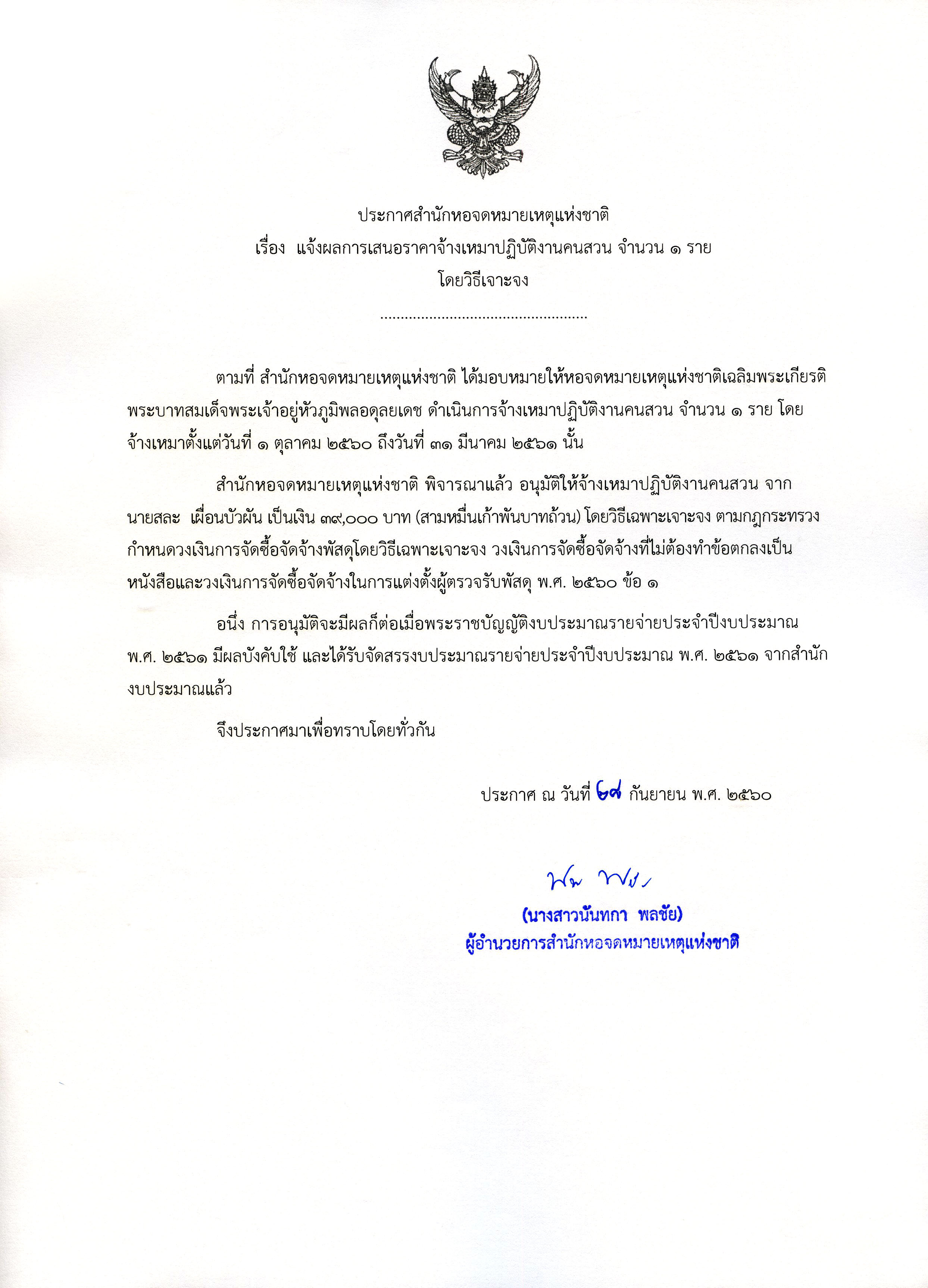 แจ้งผลการเสนอราคาจ้างเหมาปฏิบัติงานคนสวน จำนวน 1 ราย 13-3