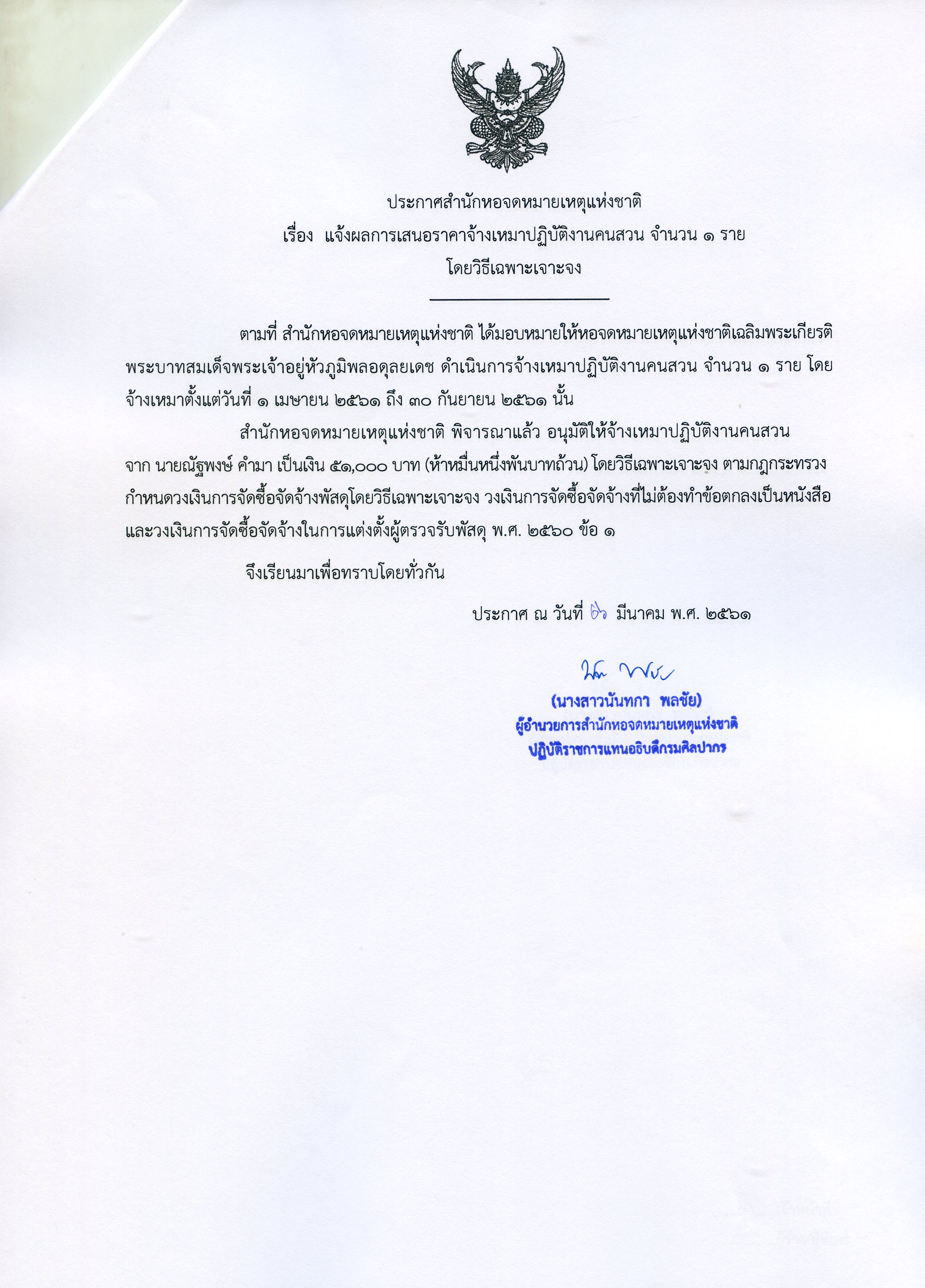 แจ้งผลการเสนอราคาจ้างเหมาปฏิบัติงานคนสวน จำนวน 1 ราย โดยวิธีเฉพาะเจาะจง 3