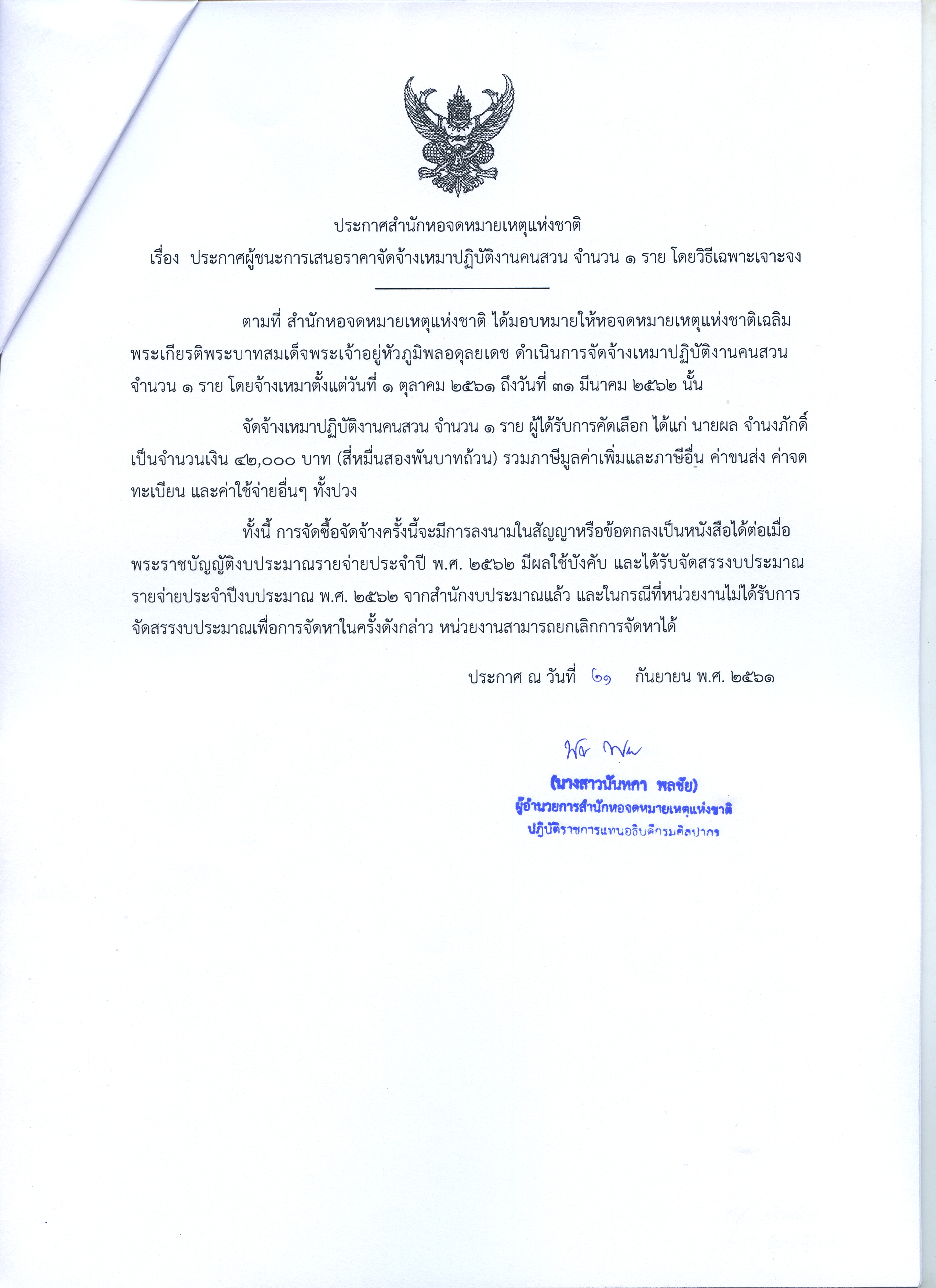 ประกาศผู้ชนะการเสนอราคาจ้างเหมาปฏิบัติงานคนสวน จำนวน 1 ราย โดยวิธีเฉพาะเจาะจง 4