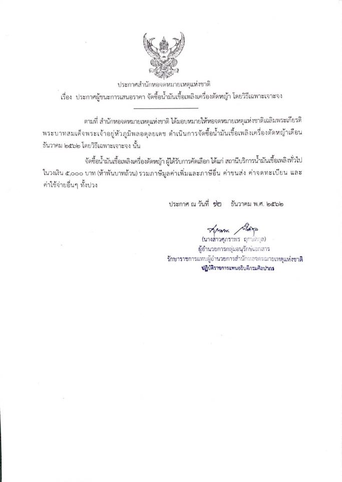 ประกาศผู้ชนะการเสนอราคา จัดซื้อน้ำมันเชื้อเพลิงเครื่องตัดหญ้า 3