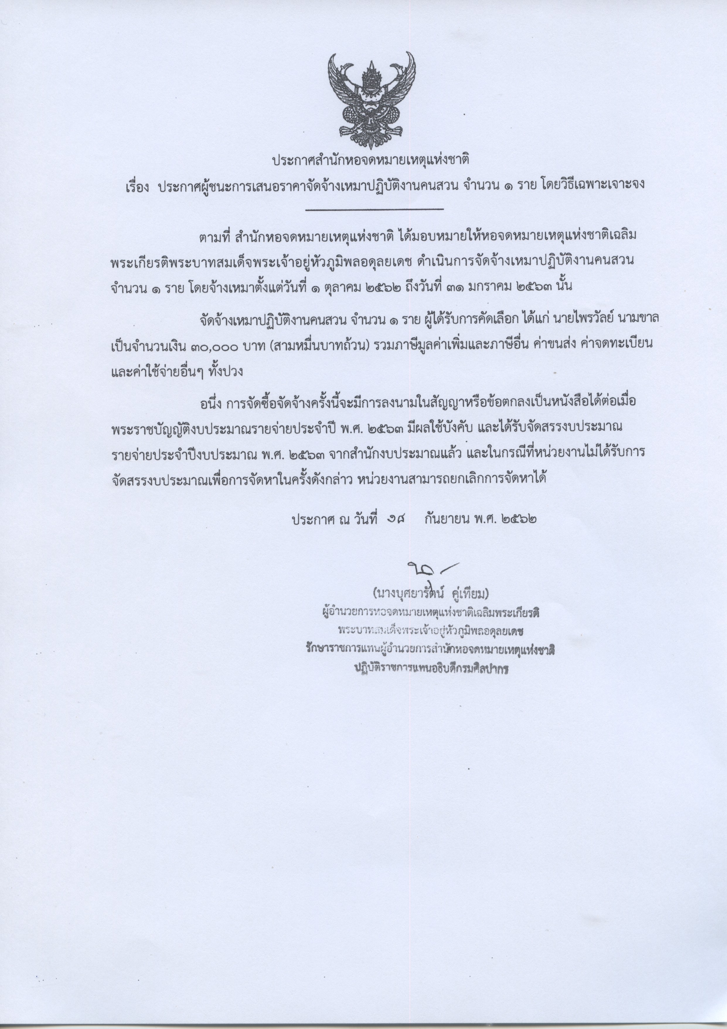 ประกาศผู้ชนะการเสนอราคาจัดจ้างเหมาปฏิบัติงานคนสวน 11