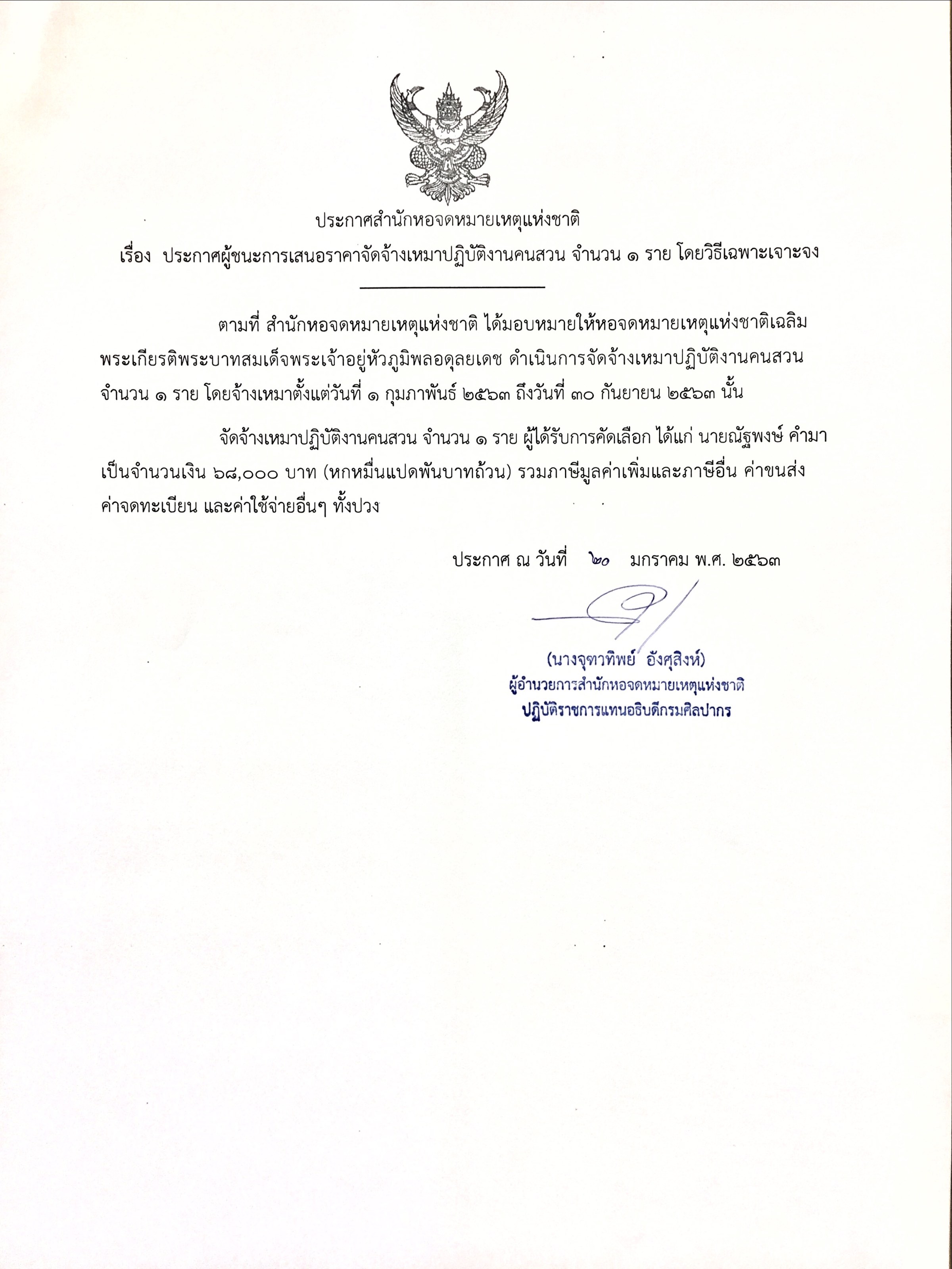 ประกาศผู้ชนะการเสนอราคาจัดจ้างเหมาปฏิบัติงานคนสวน 13