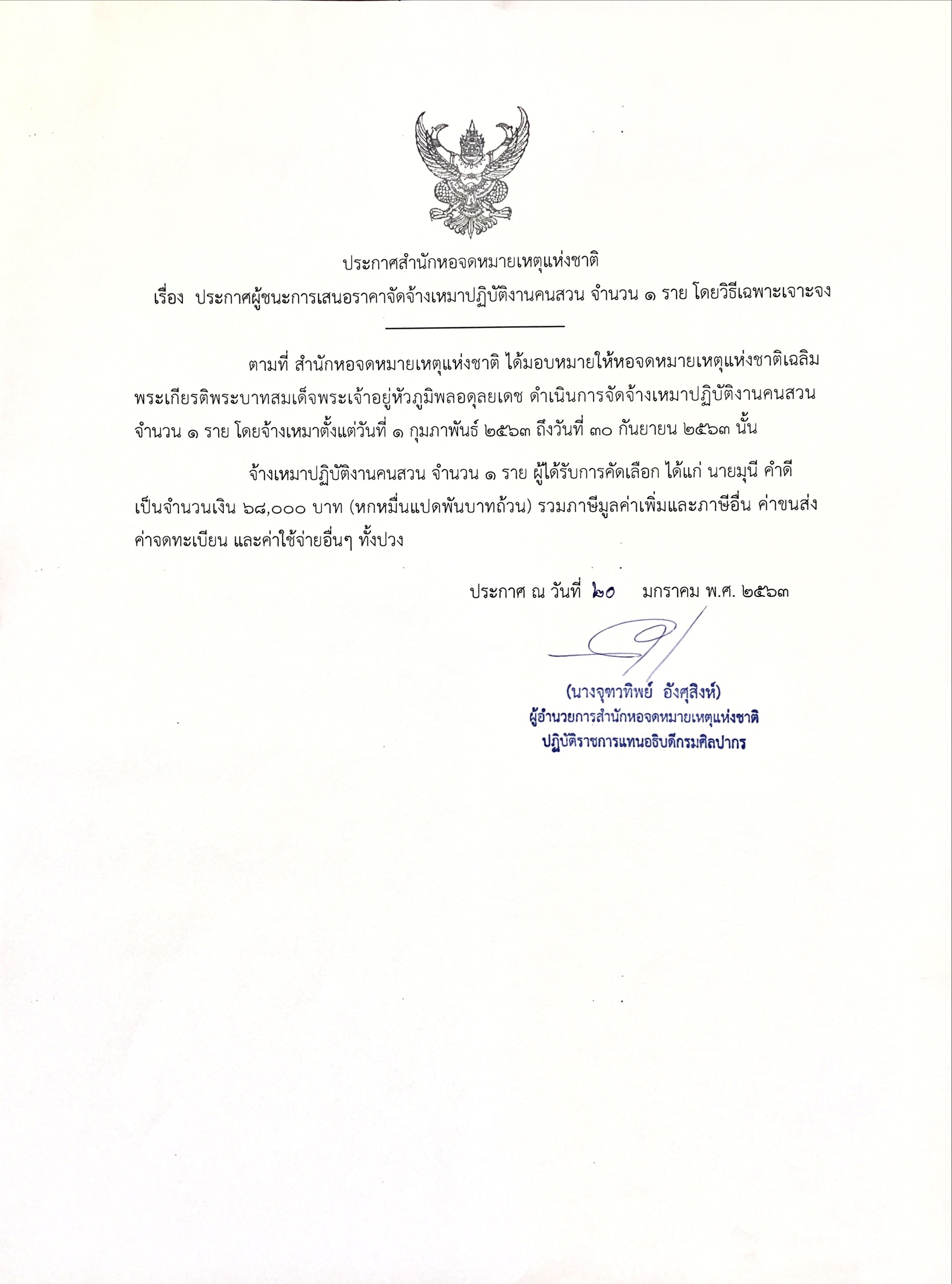 ประกาศผู้ชนะการเสนอราคาจัดจ้างเหมาปฏิบัติงานคนสวน 15