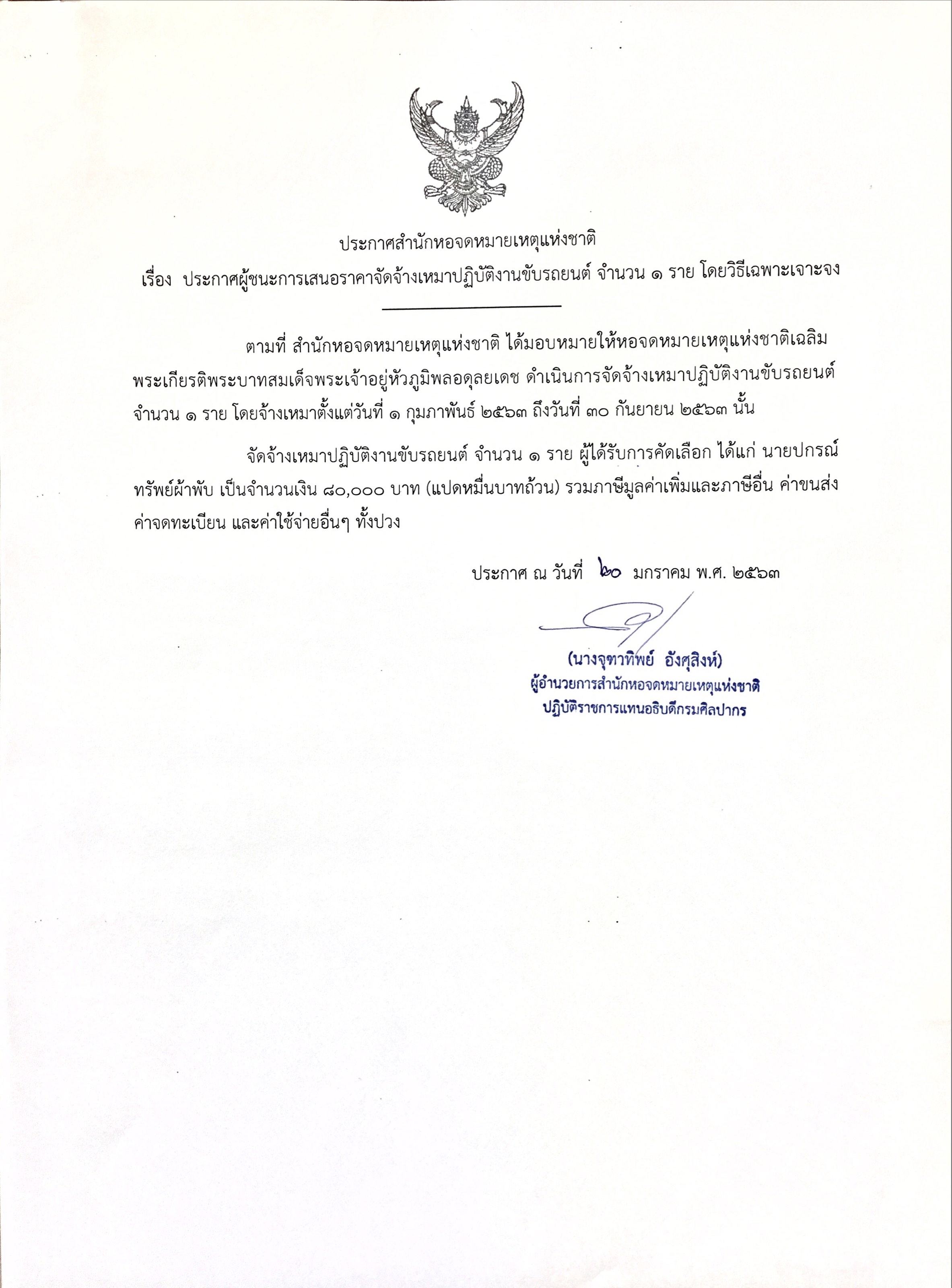 ประกาศผู้ชนะการเสนอราคาจัดจ้างเหมาปฏิบัติงานขับรถยนต์ 3