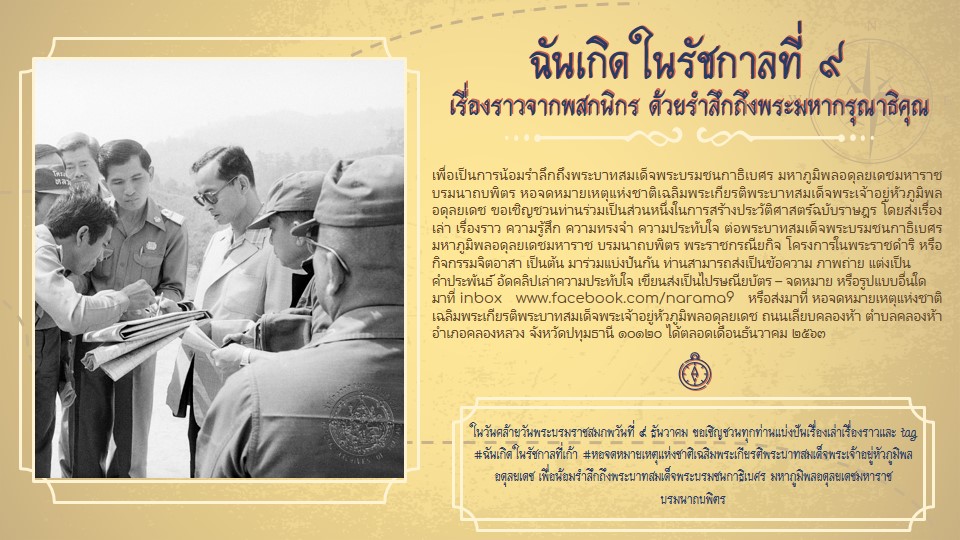เชิญทุกท่านร่วมกิจกรรมเฉลิมพระเกียรติพระบาทสมเด็จพระบรมชนกาธิเบศร มหาภูมิพลอดุลยเดชมหาราช บรมนาถบพิตร เนื่องในวันคล้ายวันพระบรมราชสมภพ ๕ ธันวาคม กิจกรรมที่ ๑ ฉันเกิดในรัชกาลที่ ๙