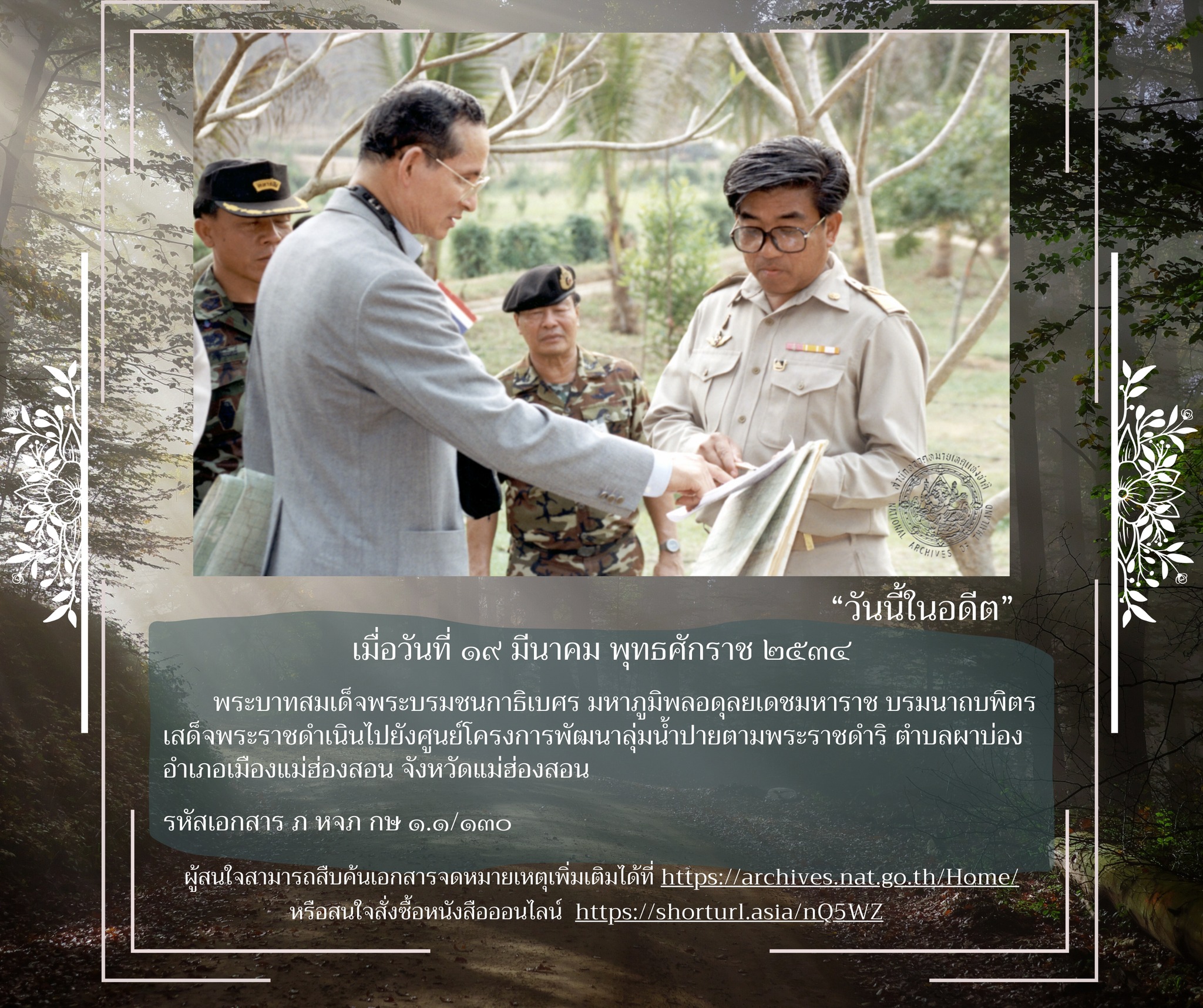 พระบาทสมเด็จพระบรมชนกาธิเบศร มหาภูมิพลอดุลยเดชมหาราช บรมนาถบพิตร เสด็จพระราชดำเนินไปยังศูนย์โครงการพัฒนาลุ่มน้ำปายตามพระราชดำริ ตำบลผาบ่อง อำเภอเมืองแม่ฮ่องสอน จังหวัดแม่ฮ่องสอน
