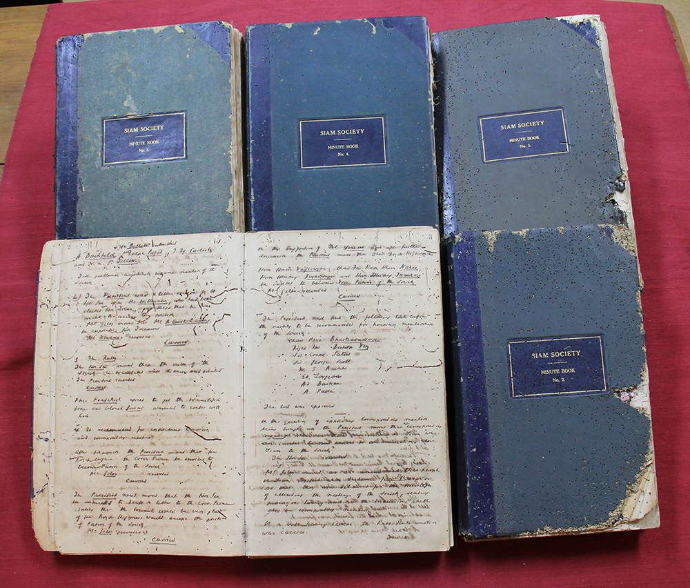 บันทึกการประชุมของสยามสมาคมในพระบรมราชูปถัมภ์ ได้รับการขึ้นทะเบียนไว้เมื่อปี พ.ศ.2556 เป็นเอกสารที่มีอายุกว่า 100 ปี (The Minute Books of the Council of the Siam Society", 100 years of recording international cooperation in research and the dissemination of knowledge in the arts and sciences) จัดเก็บไว้ ณ สยามสมาคมในพระบรมราชูปถัมภ์ ได้รับการขึ้นทะเบียนเมื่อวันที่ วันที่ 19 มิถุนายน 2556 เป็นเอกสาร ส่วนหนึ่งของบันทึกการประชุมของสยามสมาคมในพระบรมราชูปถัมภ์ ที่มีทั้งหมด 16 เล่ม บันทึกไว้ช่วงระหว่างปี 2447-2547 ในรัชสมัยพระบาทสมเด็จพระจุลจอมเกล้าเจ้าอยู่หัว เป็นการรวบรวมบันทึกความคิด ความอ่าน หรือการระดมสมองของ สมาชิกสยามสมาคมที่มาจากหลายสาขาอาชีพ มีทั้งพระบรมวงศานุวงศ์ ข้าราชการระดับสูง ที่ปรึกษาชาวต่างชาติ สะท้อนภาพและมุมมองของสังคมในยุคสมัยนั้น ซึ่งเป็นประโยชน์ในการศึกษาวิจัย และอ้างอิงได้