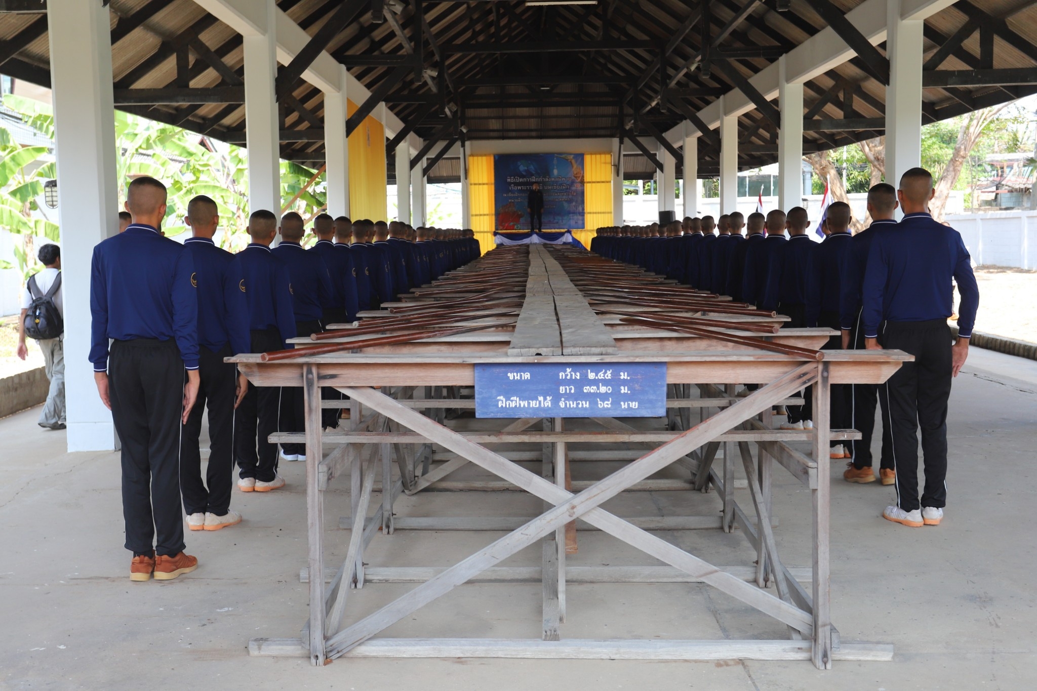 นอกจากไม้กระดานแล้ว การก่อสร้างเขียงฝึกในปัจจุบันยังสามารถใช้วัสดุอุปกรณ์อื่น ๆ ได้ด้วยเช่นกัน ทั้งนี้ต้องคำนึงถึงความคงทนแข็งแรงของโครงสร้างเขียงฝึกเป็นสำคัญ เนื่องจากต้องรองรับน้ำหนักของกำลังพลฝีพายเป็นจำนวนมาก อนึ่ง การฝึกอบรมกำลังพลฝีพายบนเขียงฝึกในครั้งนี้ กองทัพเรือวางแผนกำหนดการซ้อมตั้งแต่วันจันทร์ที่ 18 มีนาคม ถึงวันพฤหัสบดีที่ 16 พฤษภาคม 2567 แบ่งพื้นที่การฝึกเป็น 12 พื้นที่ มีเขียงฝึกจำนวนทั้งสิ้น 20 เขียง