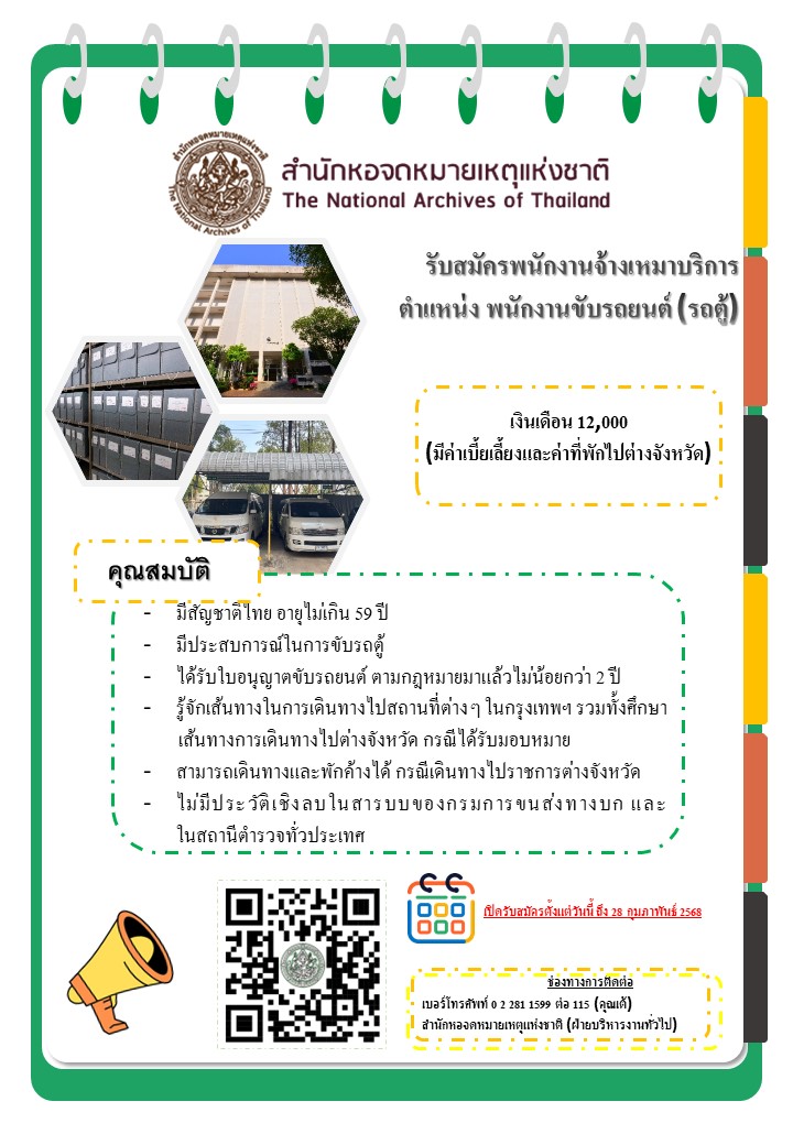ประกาศรับสมัครจ้างเหมาบริการปฏิบัติงานขับรถยนต์ (รายเดือน) จำนวน 1 ราย