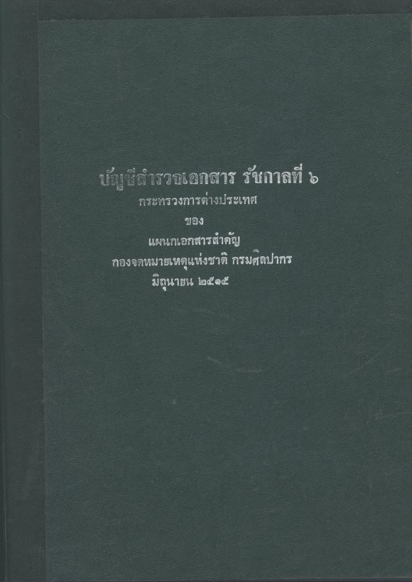 - บัญชีเอกสารกระทรวงต่างประเทศ รัชกาลที่ 6 จำนวน 1 เล่ม ระยะเวลาเอกสาร พ.ศ. 2455 - 2468