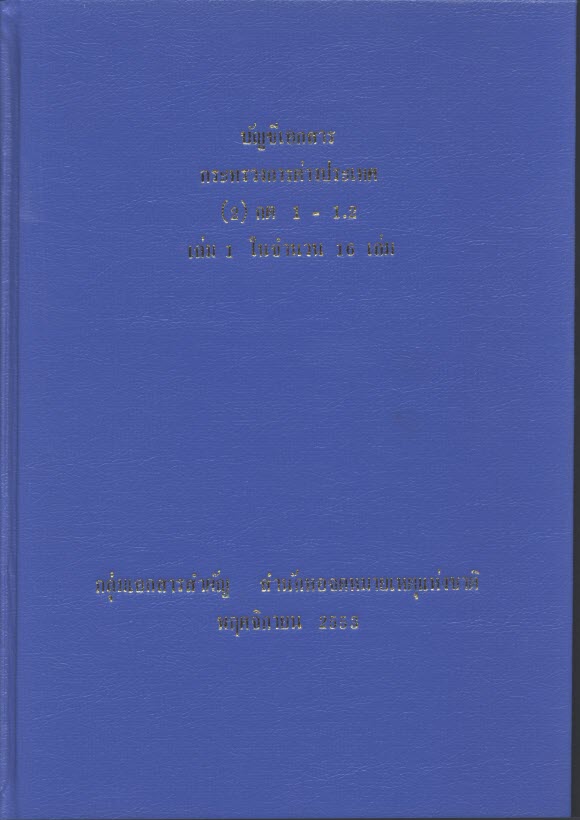 - บัญชีเอกสารกระทรวงต่างประเทศ: (2) กต ระยะเวลาเอกสาร พ.ศ.2432 -2527 จำนวน 16 เล่ม