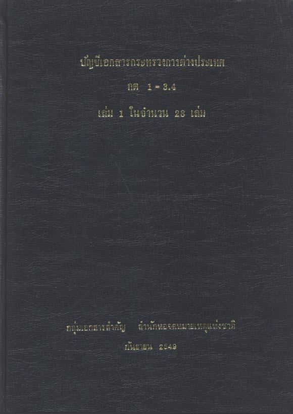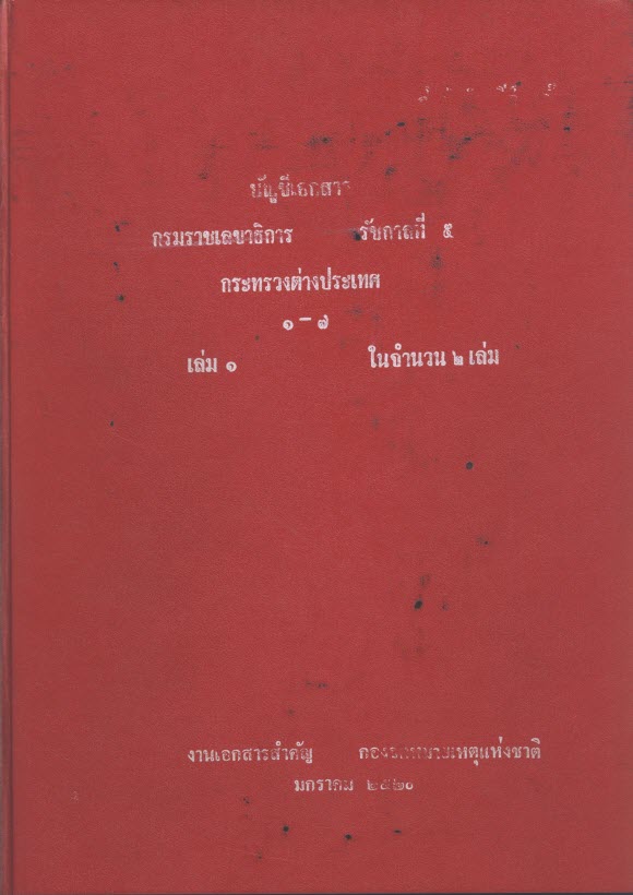 - บัญชีเอกสารกรมราชเลขาธิการ รัชกาลที่ 5 กระทรวงต่างประเทศ ระยะเวลาเอกสาร พ.ศ. 2419 - 2454 จำนวน 2 เล่ม