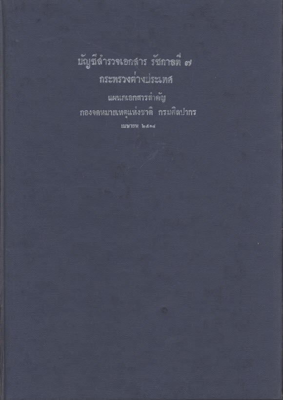 - บัญชีเอกสารกระทรวงต่างประเทศ รัชกาลที่ 7 จำนวน 1 เล่ม ระยะเวลาเอกสาร พ.ศ. 2468 - 2475