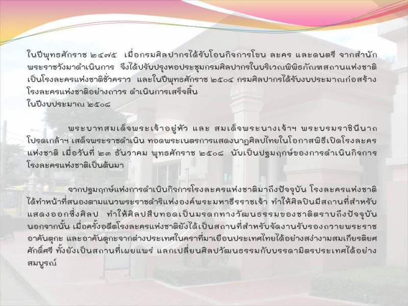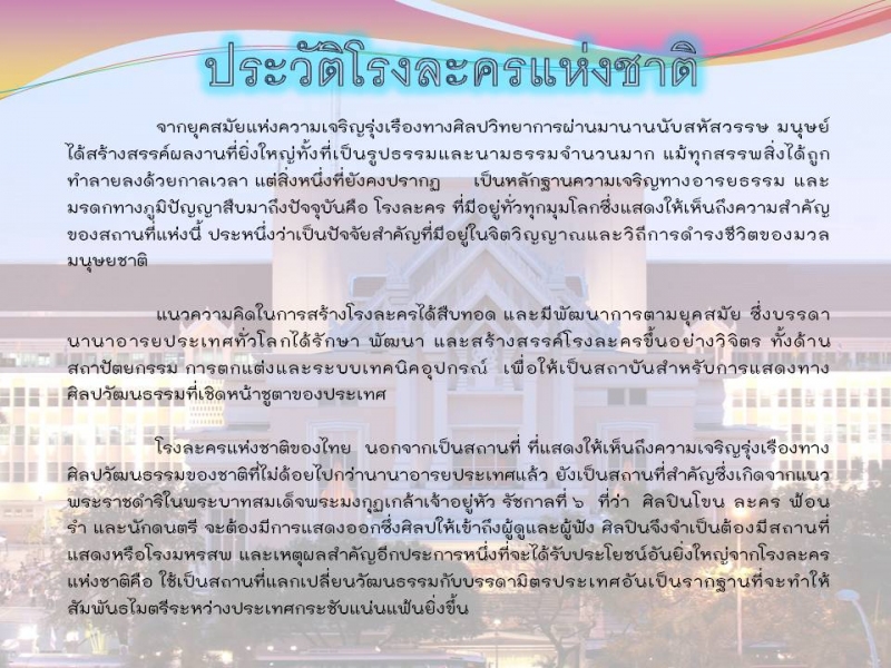ลักษณะงานและหน้าที่ของโรงละครตามมาตรฐานสากล