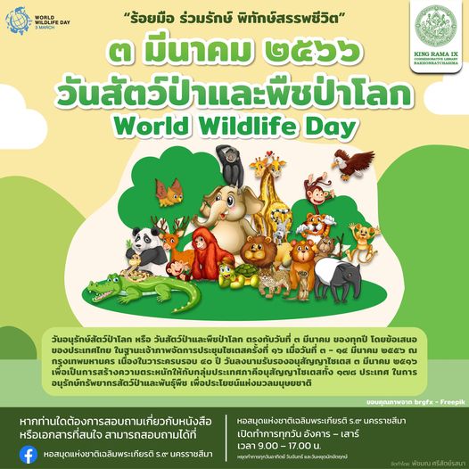 ๓ มีนาคม ๒๕๖๖ วันสัตว์ป่าและพืชป่าโลก (World Wildlife Day)