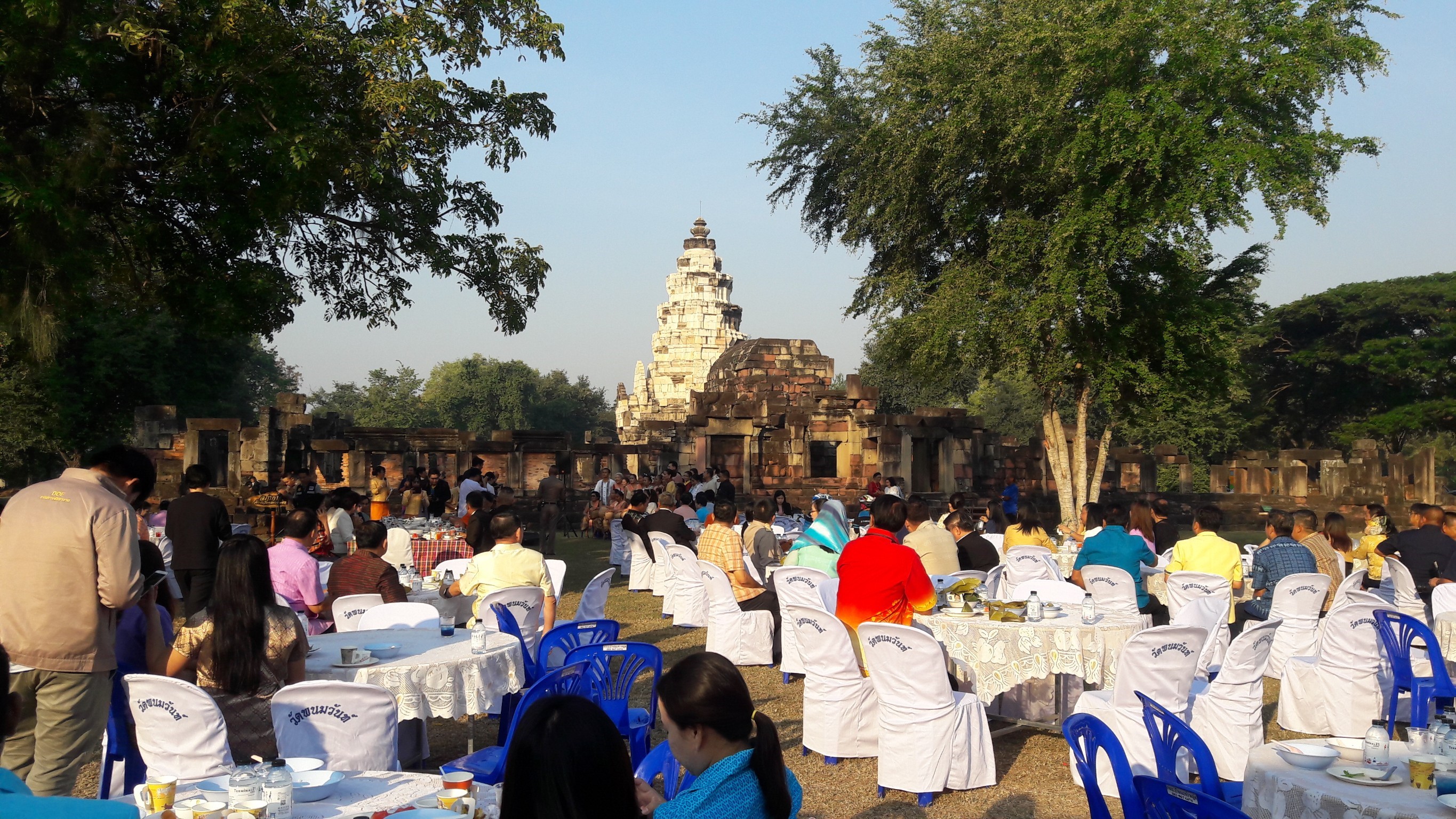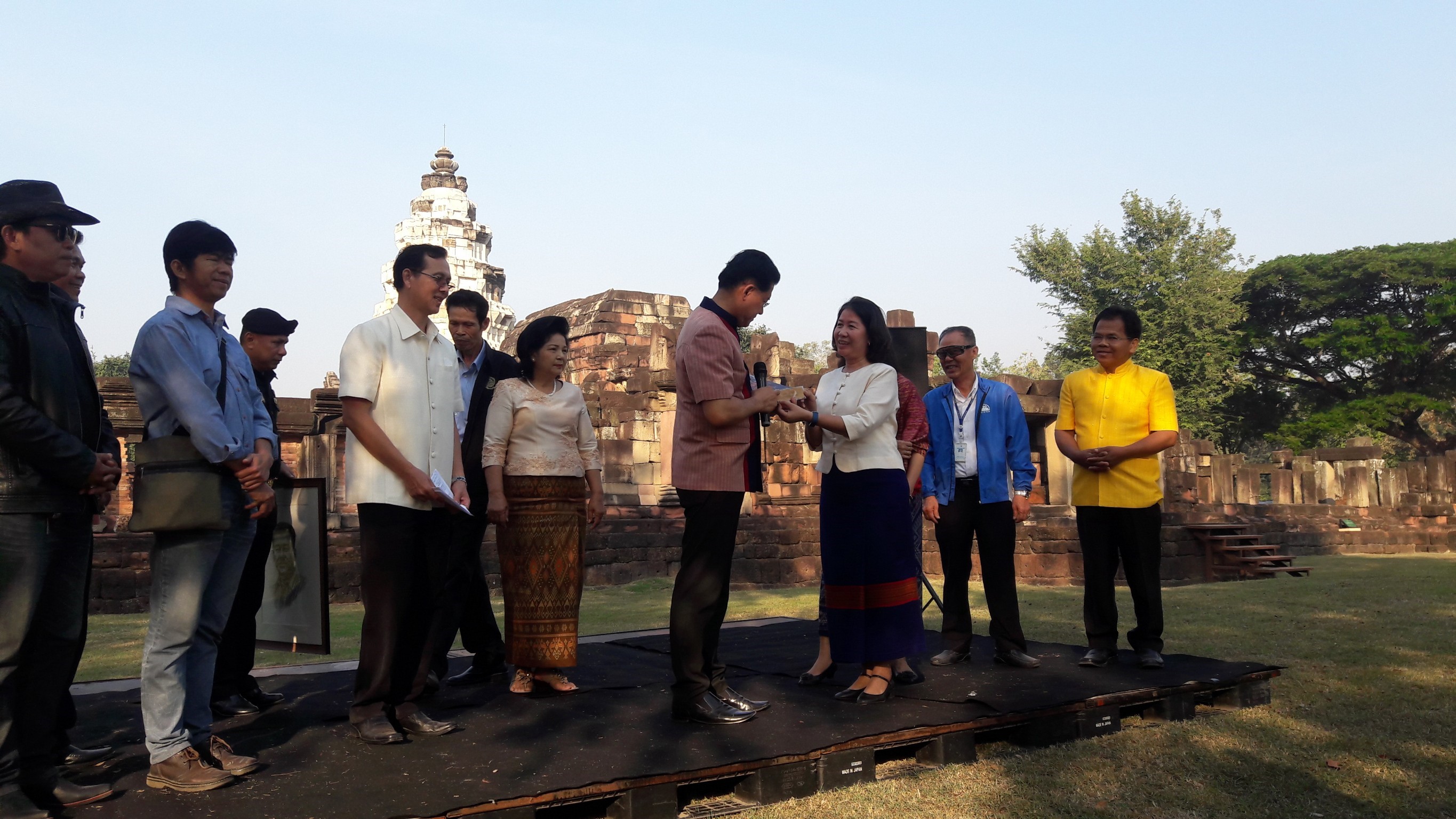 นางกันยา แต้เจริญวิริยะกุล ผู้อำนวยการหอสมุดแห่งชาติเฉลิมพระเกียรติ ร.๙ นครราชสีมา พร้อมด้วยข้าราชการและเจ้าหน้าที่หอสมุดแห่งชาติเฉลิมพระเกียรติ ร.๙ นครราชสีมา เข้าร่วมประชุมสภากาแฟ จังหวัดนครราชสีมา เพื่อแลกเปลี่ยนความคิดเห็นระหว่างหัวหน้าส่วนราชการในจังหวัด รวมถึงได้มีการจัดแสดงนิทรรศการมรดกทางวัฒนธรรมอีสานตอนล่าง และกิจกรรมการจารอักษรโบราณ ในวันศุกร์ที่ ๒๑ ธันวาคม ๒๕๖๑ ณ ปราสาทหินพนมวัน ตำบลบ้านโพธิ์ อำเภอเมืองนครราชสีมา จังหวัดนครราชสีมา