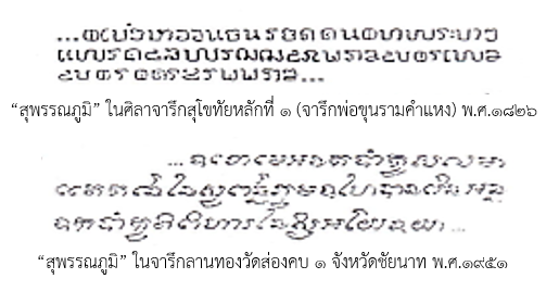 หลักฐานสำคัญที่กล่าวถึงชื่อเมืองสุพรรณภูมิ ในช่วงพุทธศตวรรษที่ ๑๙ – ๒๑ คือ จารึกพ่อขุนรามคำแหงมหาราช (พ.ศ.๑๘๒๖) กล่าวถึงเมือง “สุพรรณภูมิ” อยู่ทางทิศใต้ของกรุงสุโขทัย “....เบื้องหัวนอนรอดคนที พระบาง แพรกสุพรรณภูมิ ราชบุรี เพชรบุรี ศรีธรรมราช ฝั่งทะเลสมุทรเป็นที่แล้ว....”