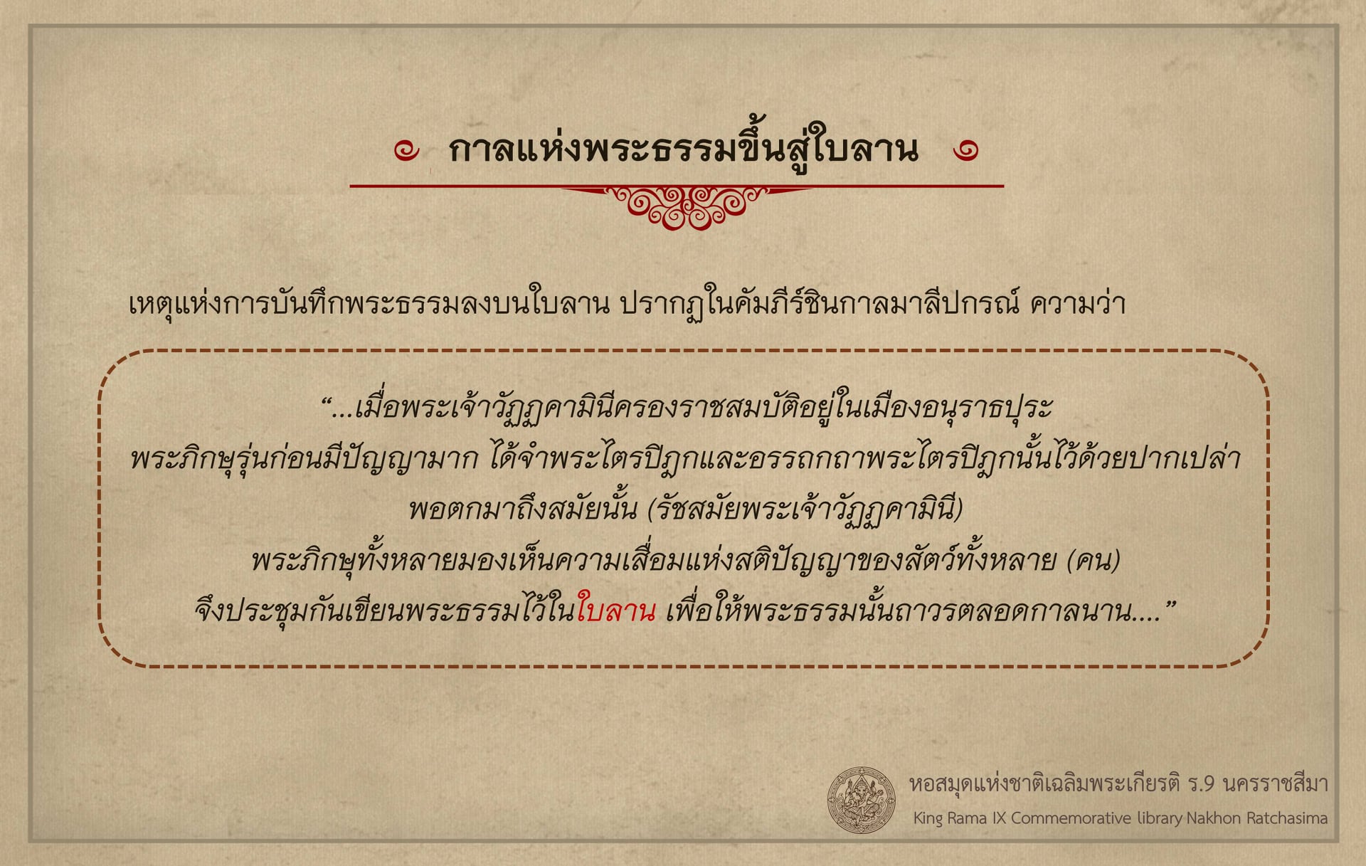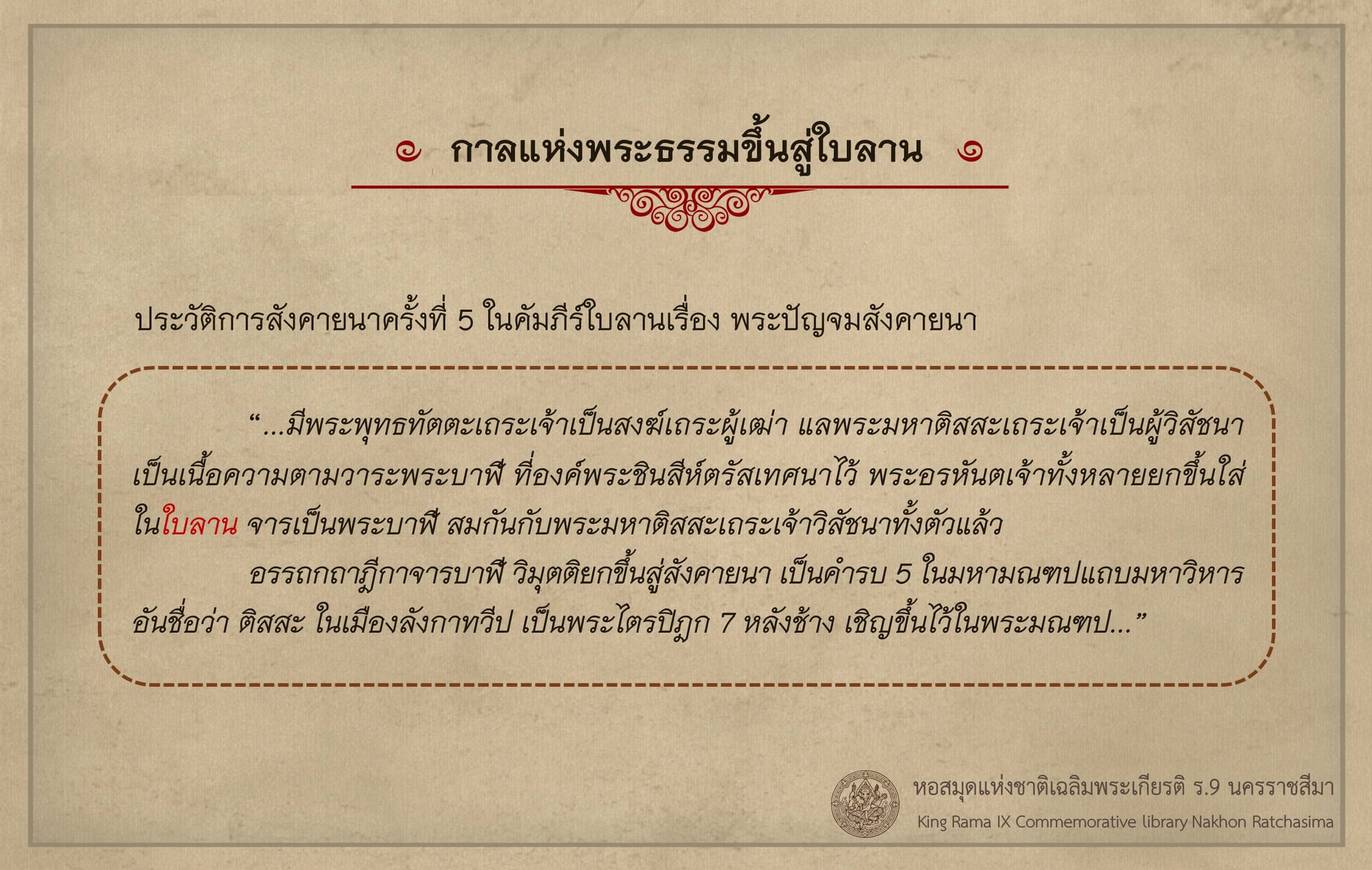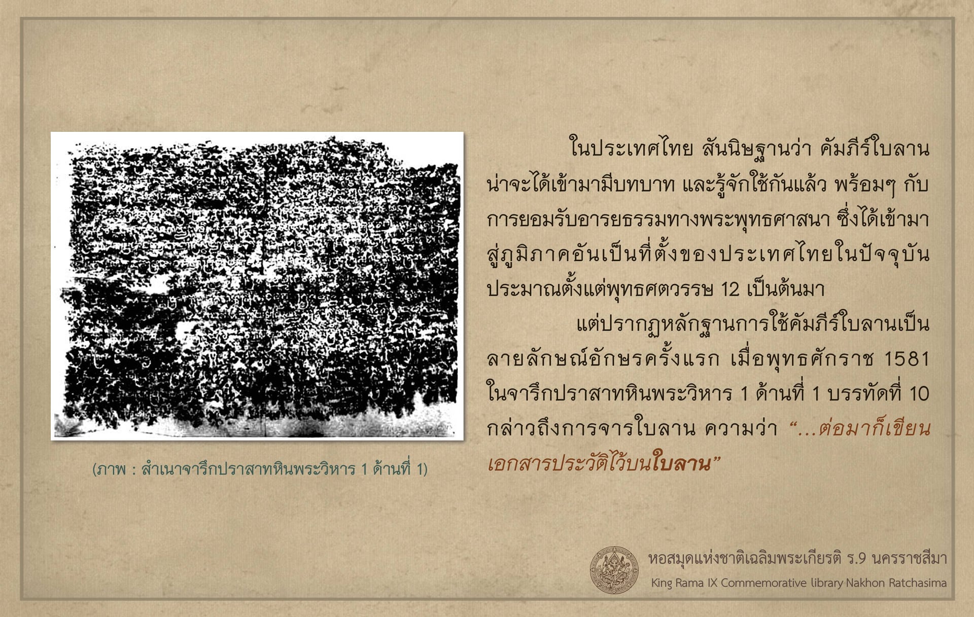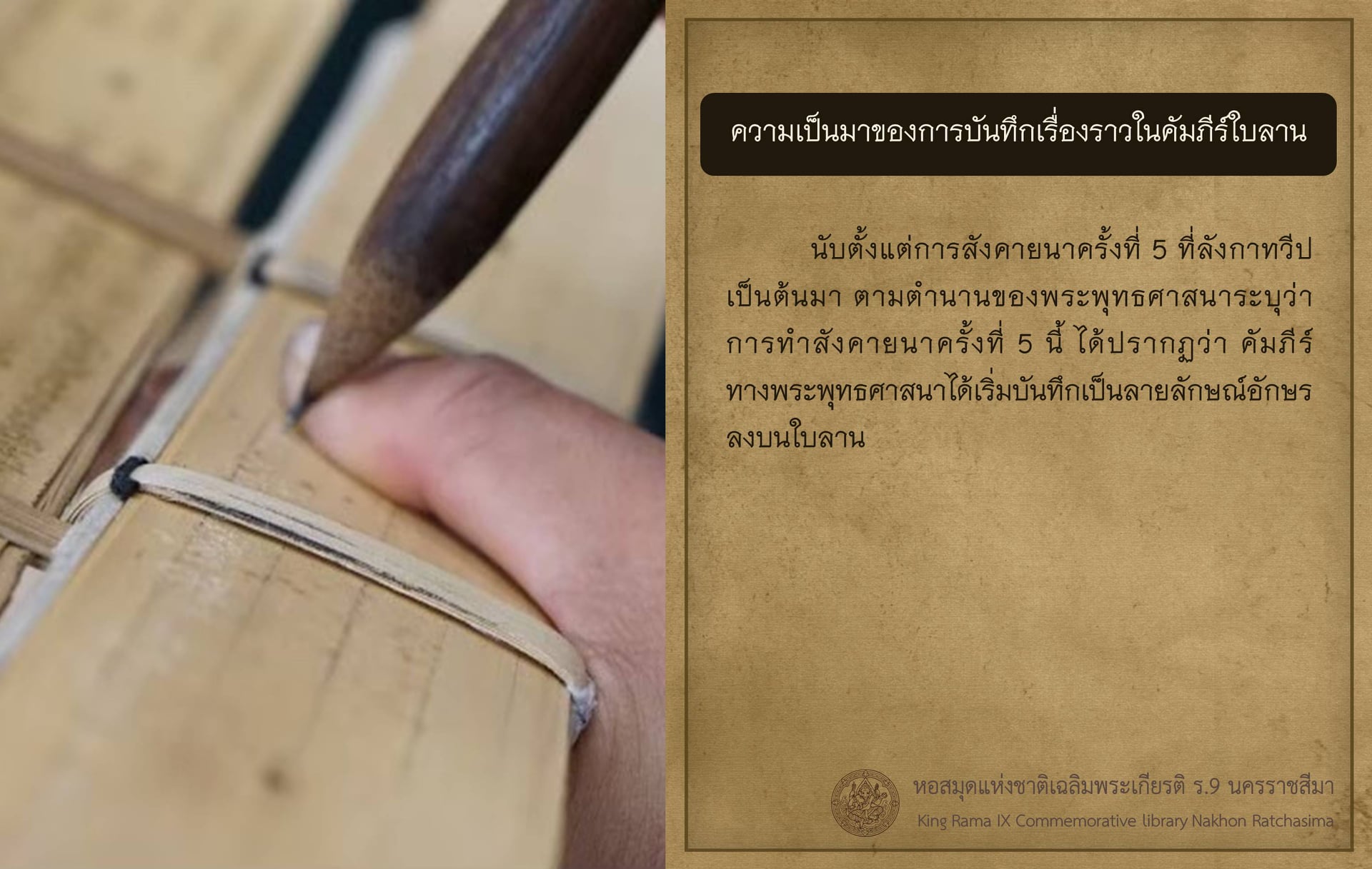 องค์ความรู้หอสมุดแห่งชาติเฉลิมพระเกียรติ ร.๙ นครราชสีมา เรื่อง ต้นกำเนิดการใช้ใบลานจารหนังสือ